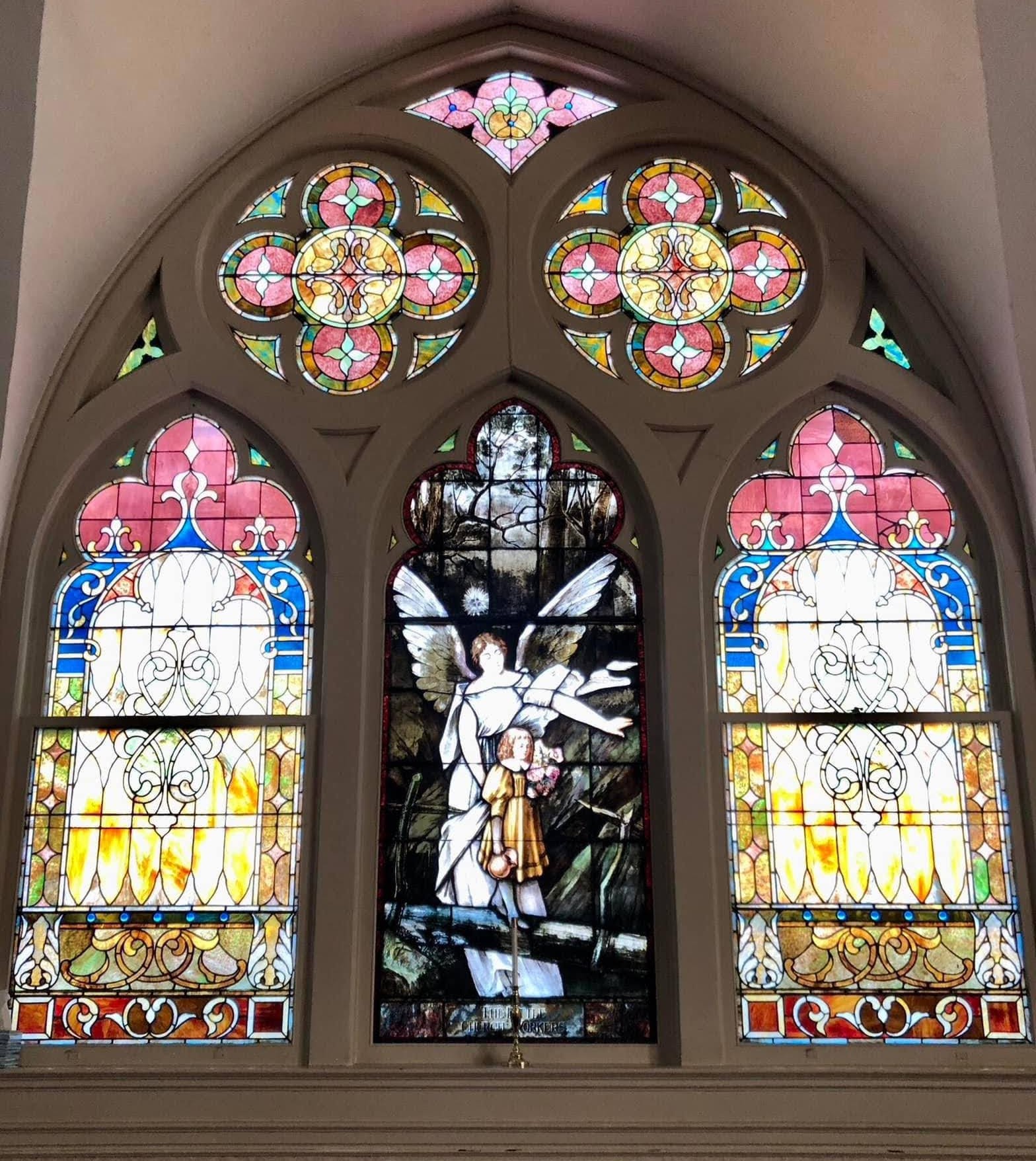 My name is James Robinson. I pastor the Shelby First Presbyterian Church. In 2023 our congregation will celebrate its 200th anniversary. About a month back one of my friends was in an antique shop in Port Clinton, Ohio. There he came across a stained glass window that was marked as being from the First Presbyterian Church in downtown Mansfield. He brought it back and gifted it to me. I have looked at the pictures of the church and it’s a match! I am thrilled to have a small piece of one of these historic houses of worship in my home.