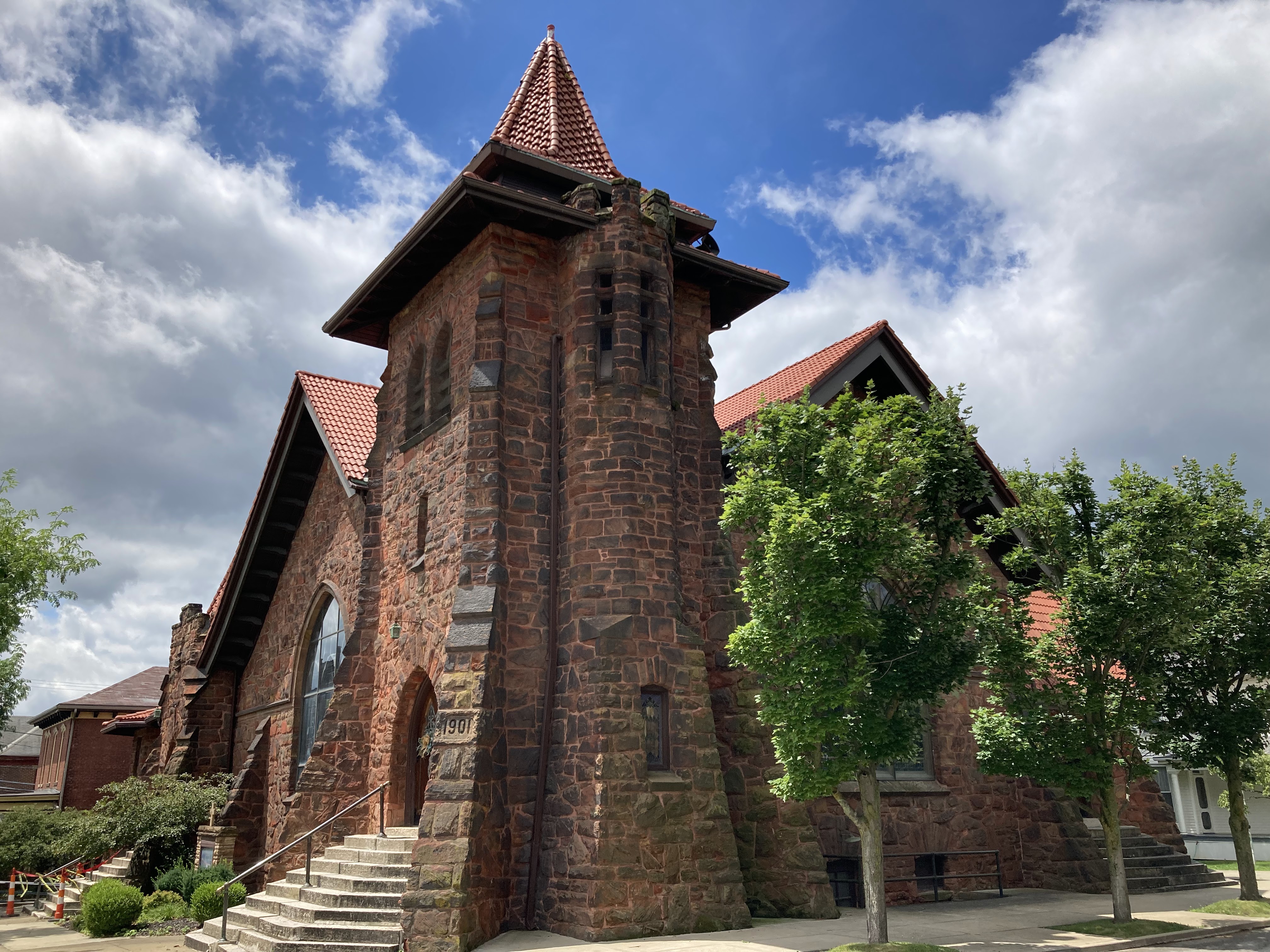 When I arrived at First Presbyterian Church in Shelby (after the stop in Ashland), I was quite surprised to see a building constructed of a reddish sandstone. It was closed as expected since this trip was spring of 2020, and thus I was unable to see the interior. While photographing Packard’s Carnegie Library design in Upper Sandusky, I glanced down the street and WHOA…there sat another church made of reddish sandstone…and it was also Presbyterian. I took pictures of it and a very attractive old church across the street. When I arrived home, I emailed the minister. I mentioned the Shelby church of similar reddish sandstone construction and asked if there was record of the architect of his church. The response from the minister: Frank Packard!!! He also said there is a similar sandstone Presbyterian church in Napoleon. Then he mentioned the architect of the old church across the street: Frank Packard!!! That’s three Packards on the same street in the small town of Upper Sandusky, Ohio…and still standing. Amazing!