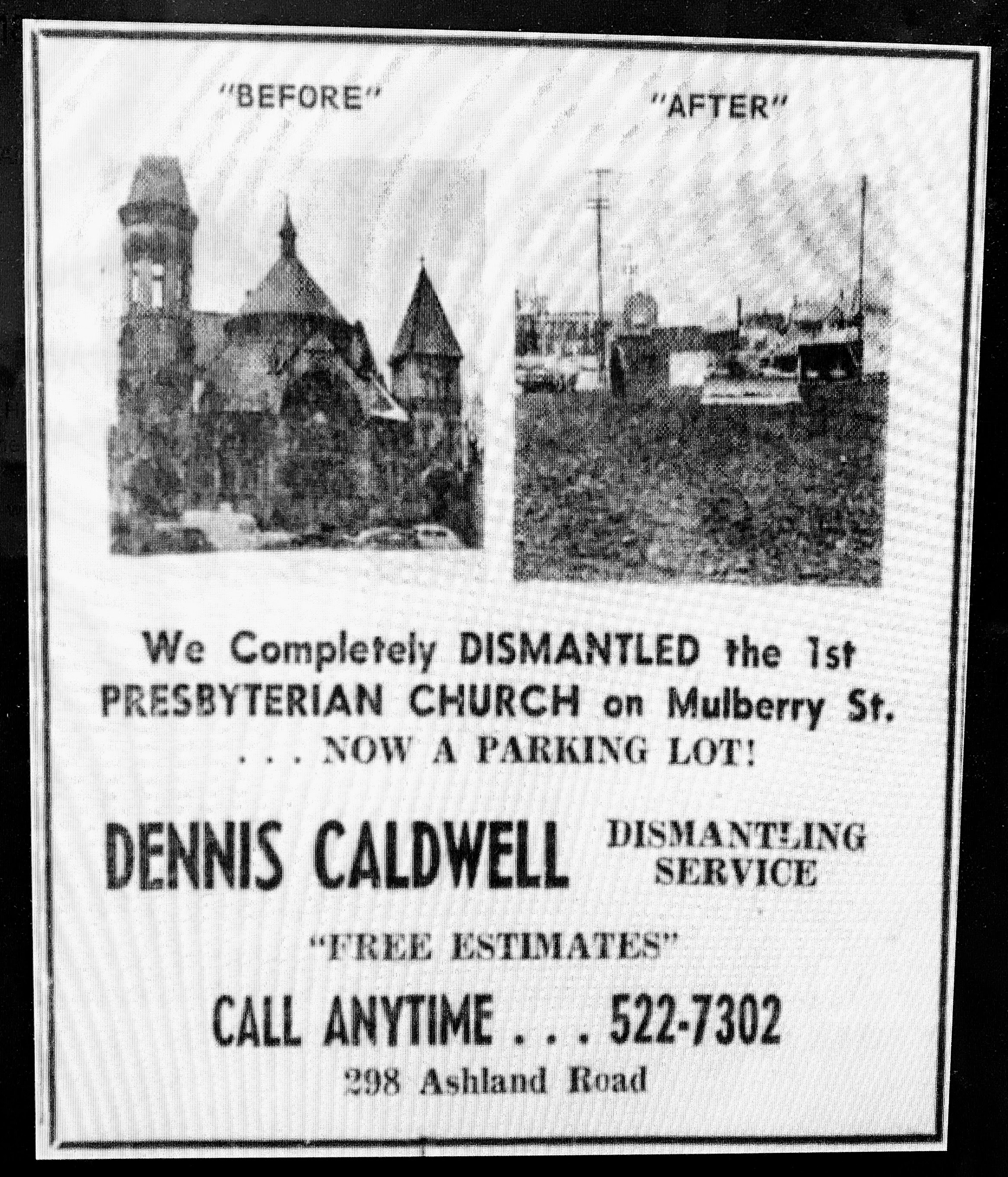 “NOW A PARKING LOT!” so says the above boastful ad. Ugh.