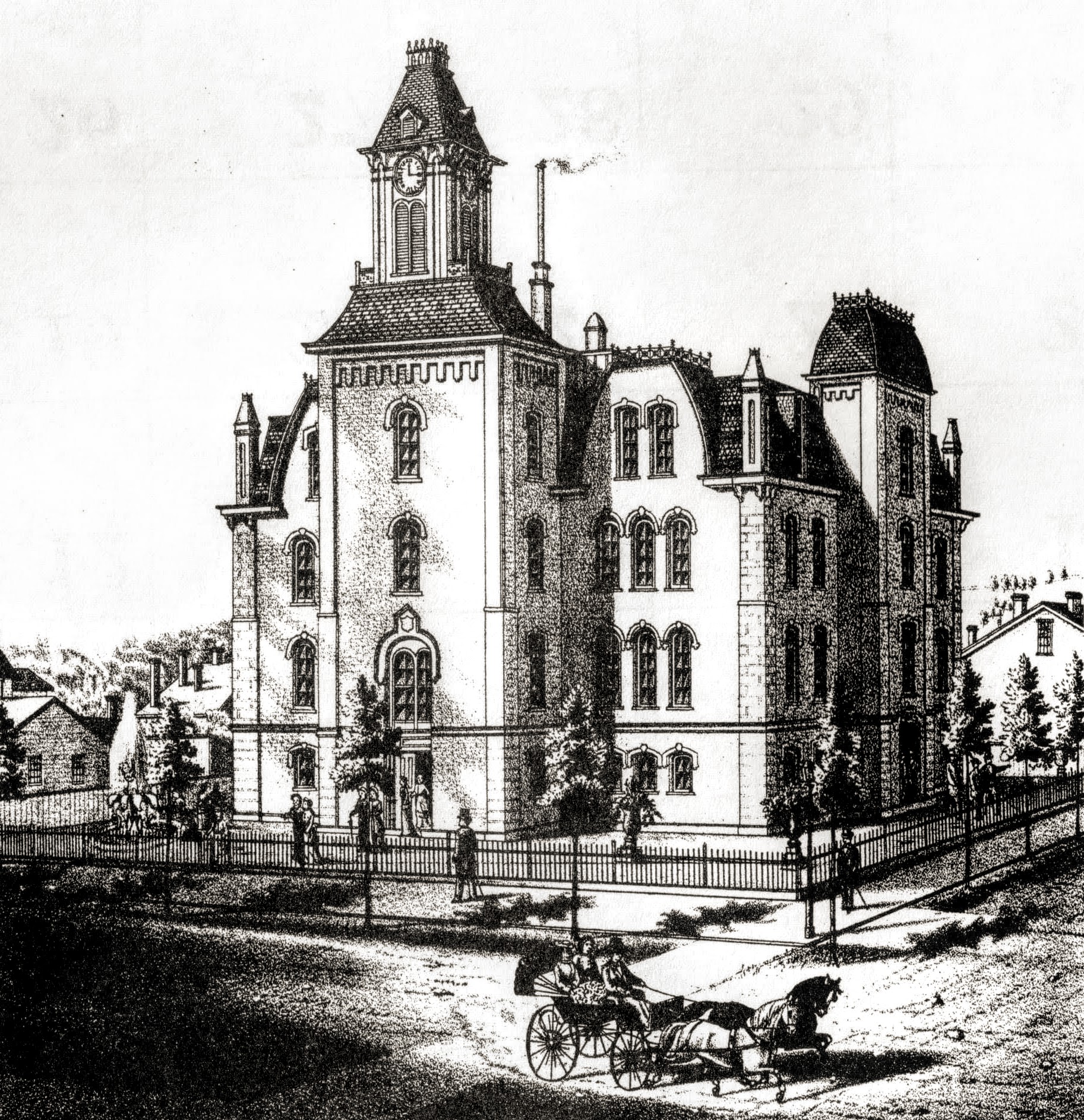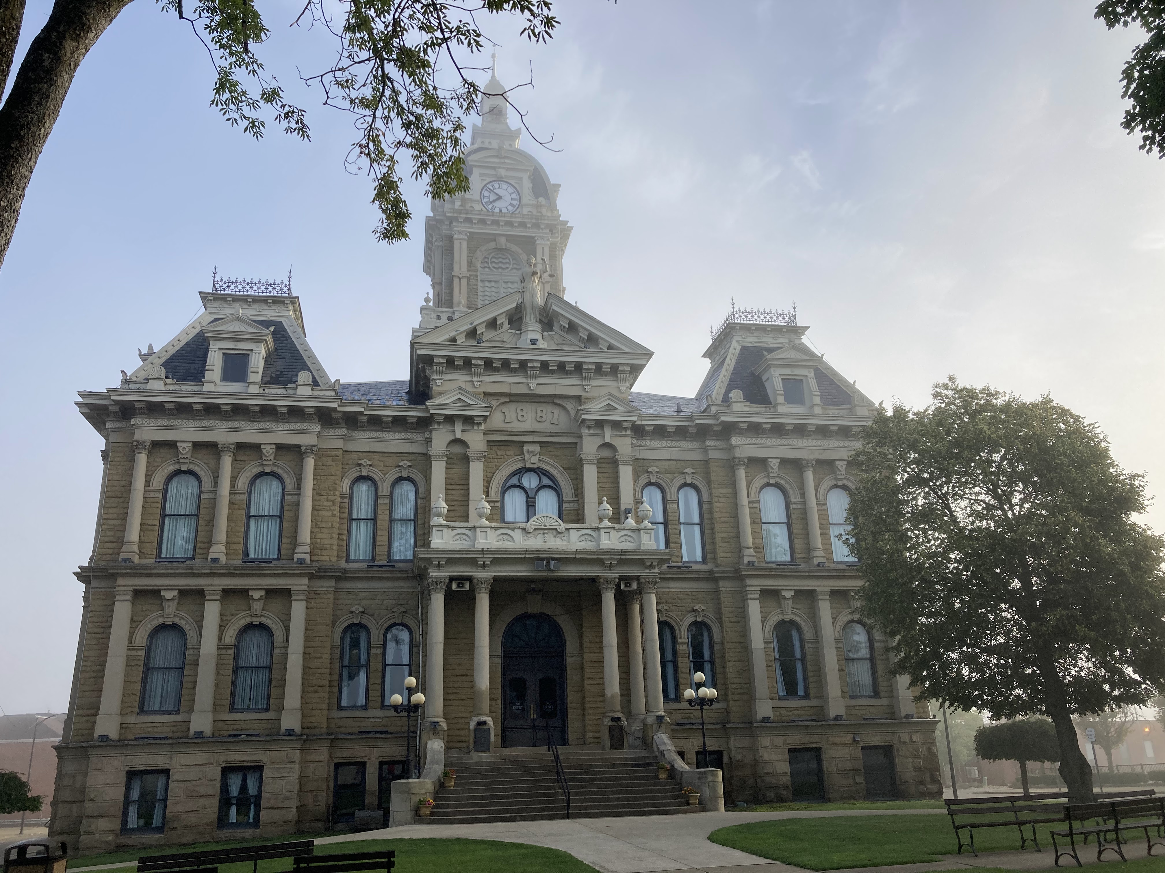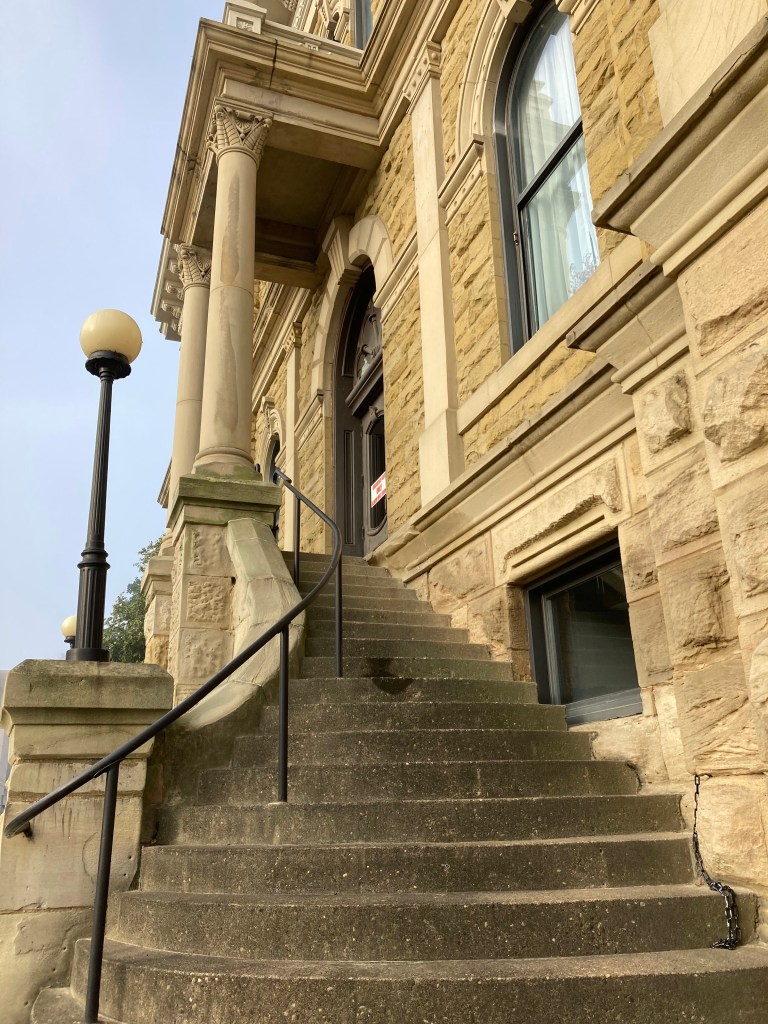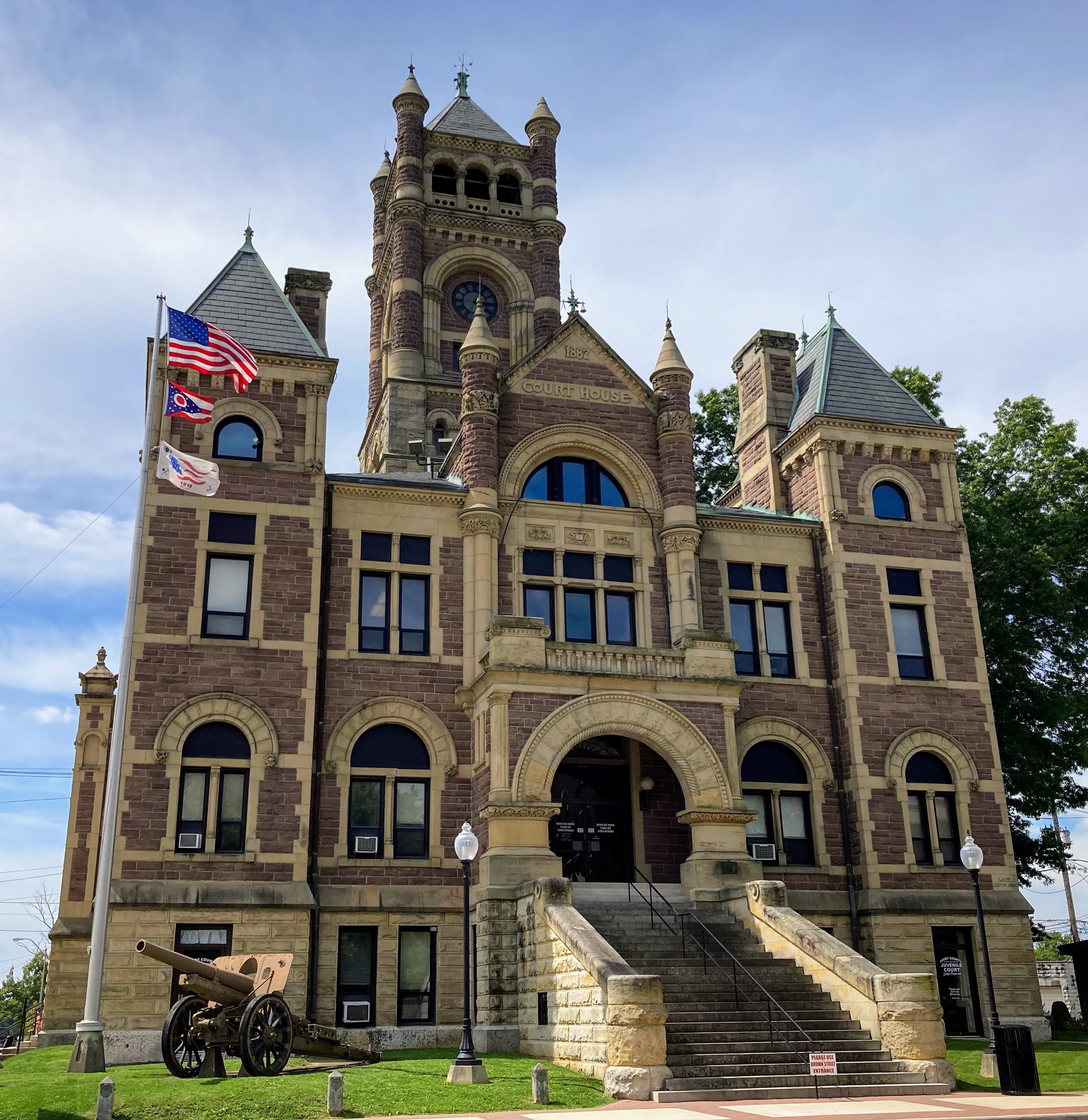 In 1864, Warren Yost briefly enrolled in a seminary located at Harlem Springs of Carroll County. (The seminary eventually relocated to Scio in Harrison County and was renamed Scio College. Yost would later design a building for the school.) In 1866, Yost enrolled at Mount Union College in Alliance of Stark County and left in 1868 after his junior year. From there, he established residence in Bellaire of Belmont County. Following a brief period doing carpentry jobs, Yost opened an architecture practice in 1870. He was largely a self-taught architect/engineer, and he quickly established a reputation. Courthouses, schools, children’s homes and jails were among his most significant builds. The 1880’s were the golden age of courthouse construction in Ohio…and all of Warren Yost’s striking designs are still in use in these counties/cities: Belmont (Saint Clairsville), Guernsey (Cambridge), Harrison (Cadiz), Holmes (Millersburg), Miami (Troy) and Perry (New Lexington).