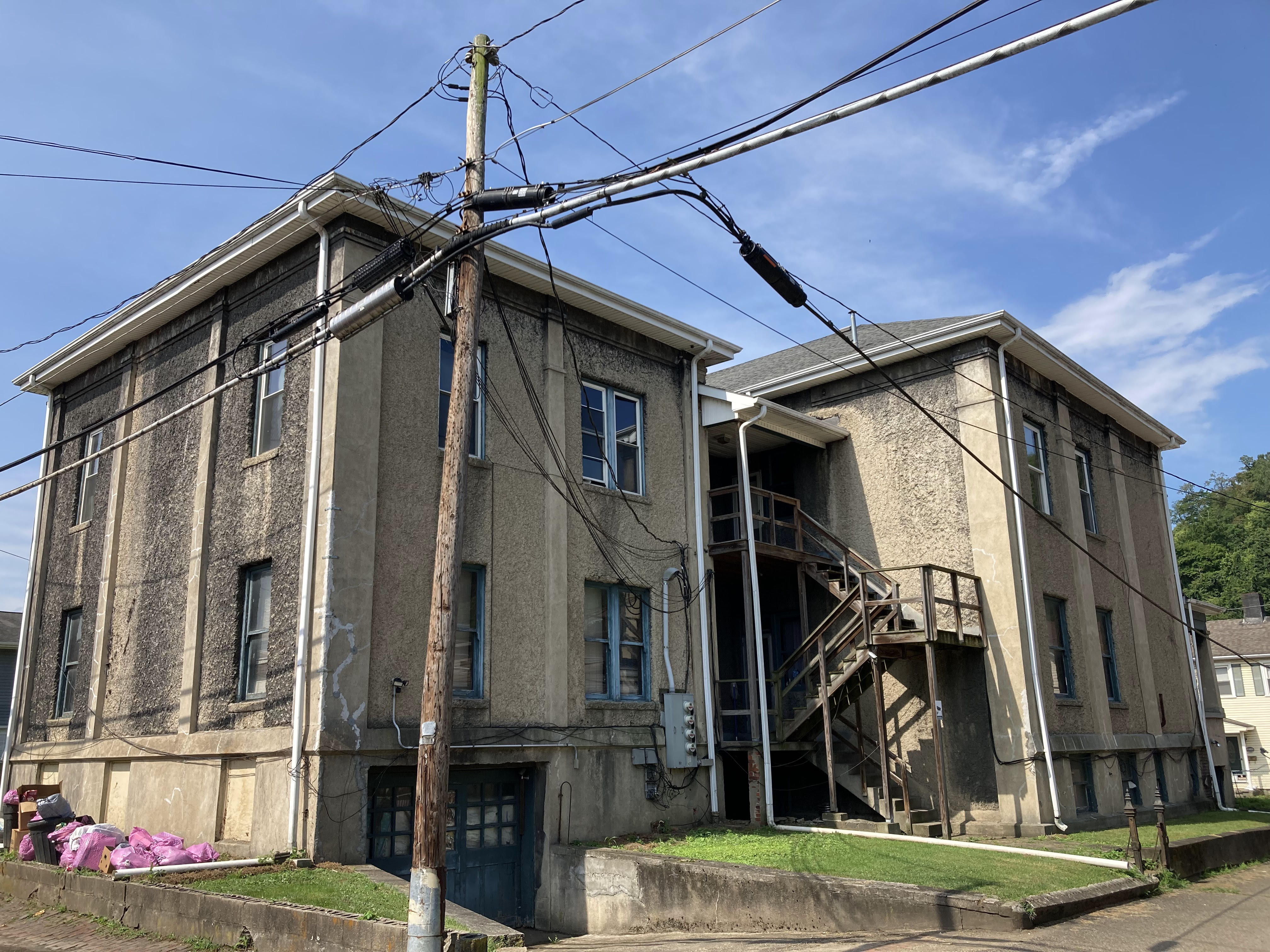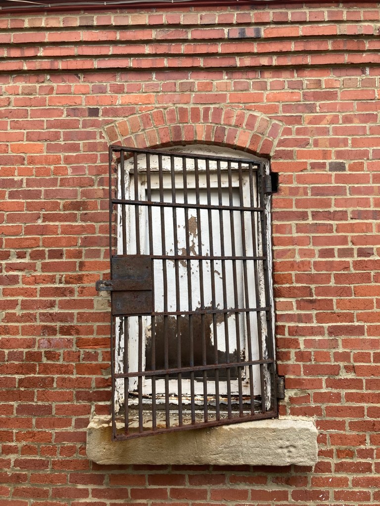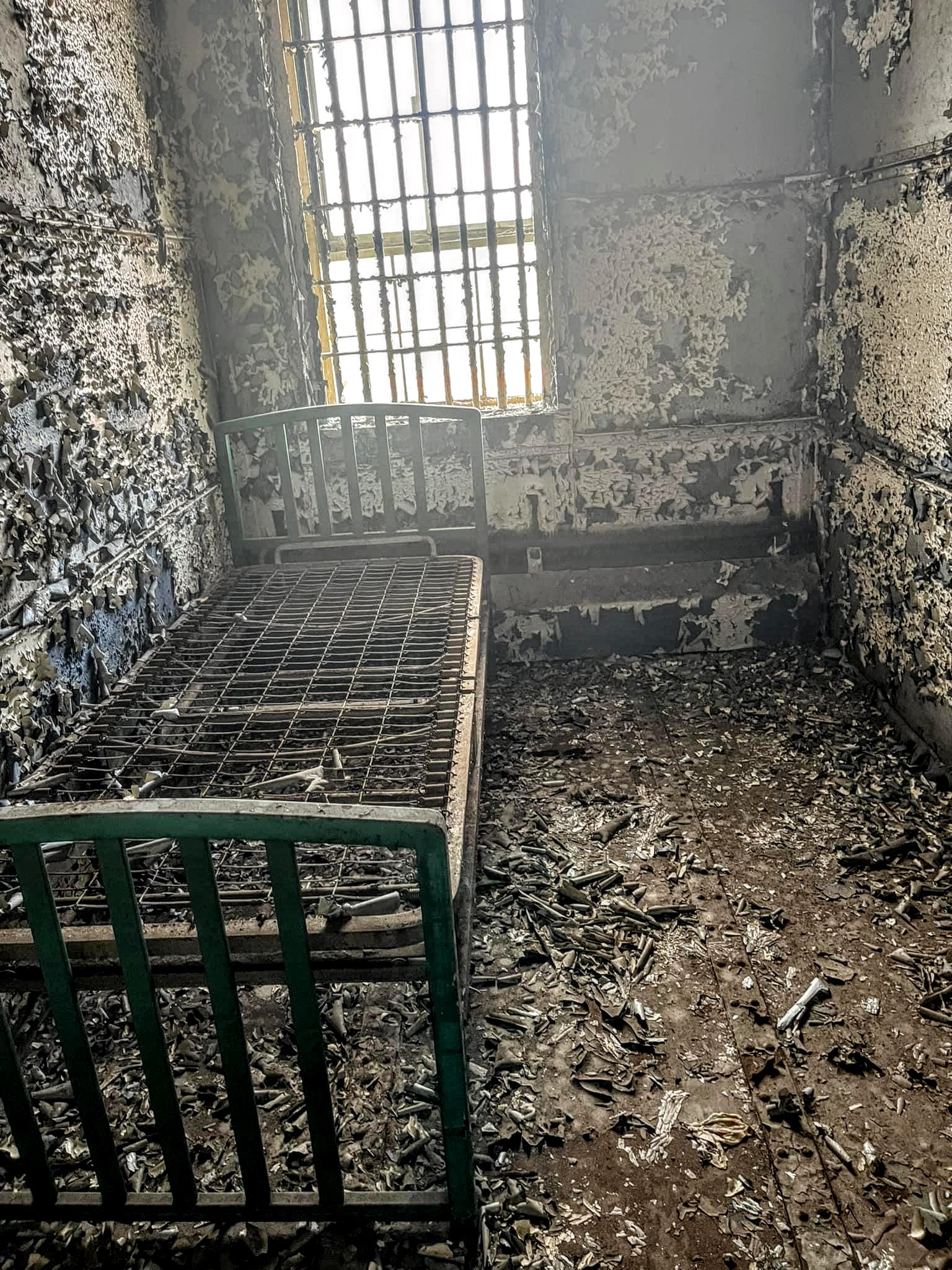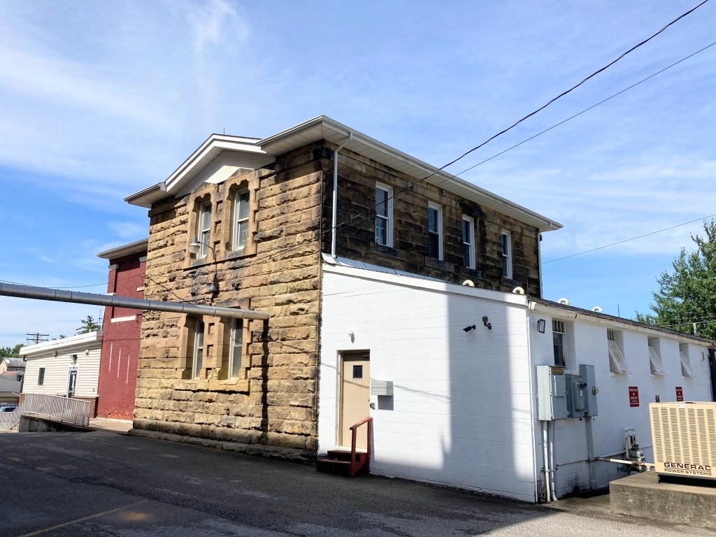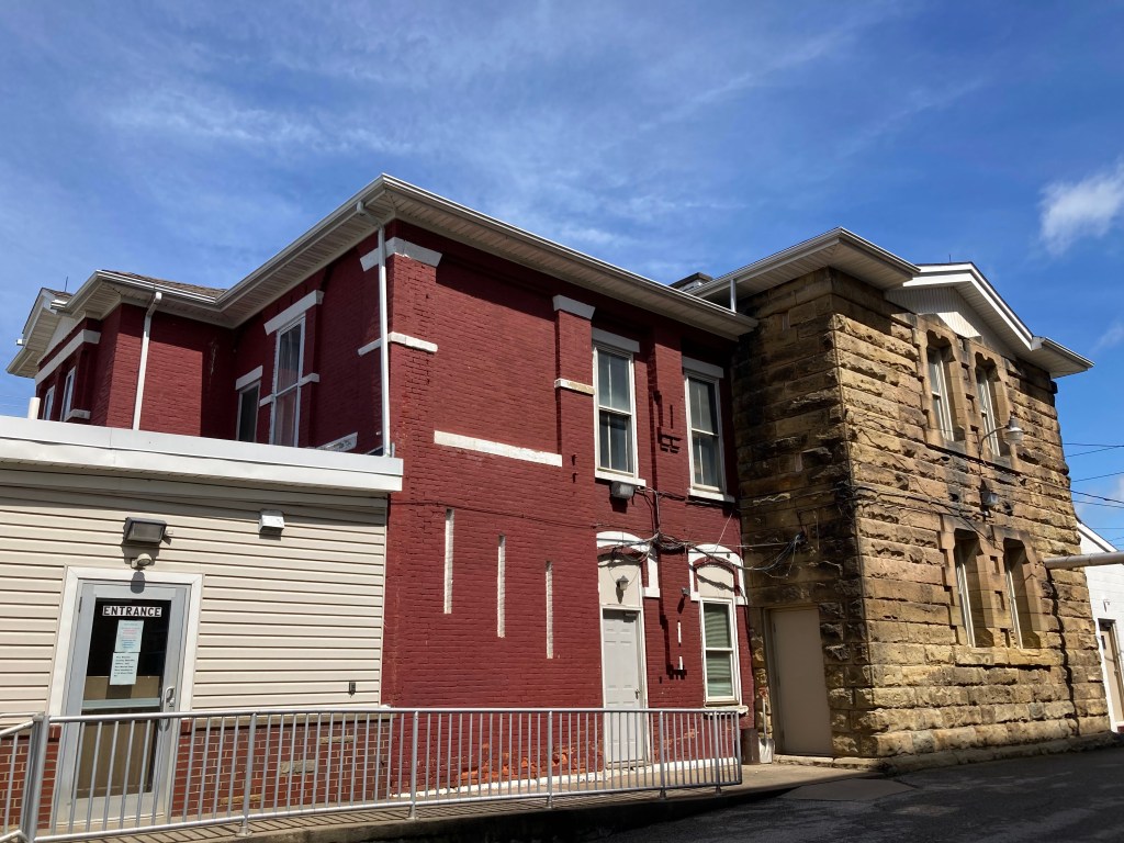The jail cells in the back are unrestored. Photo credit: History and Genealogy for the Belmont Co. OH Area Facebook page.