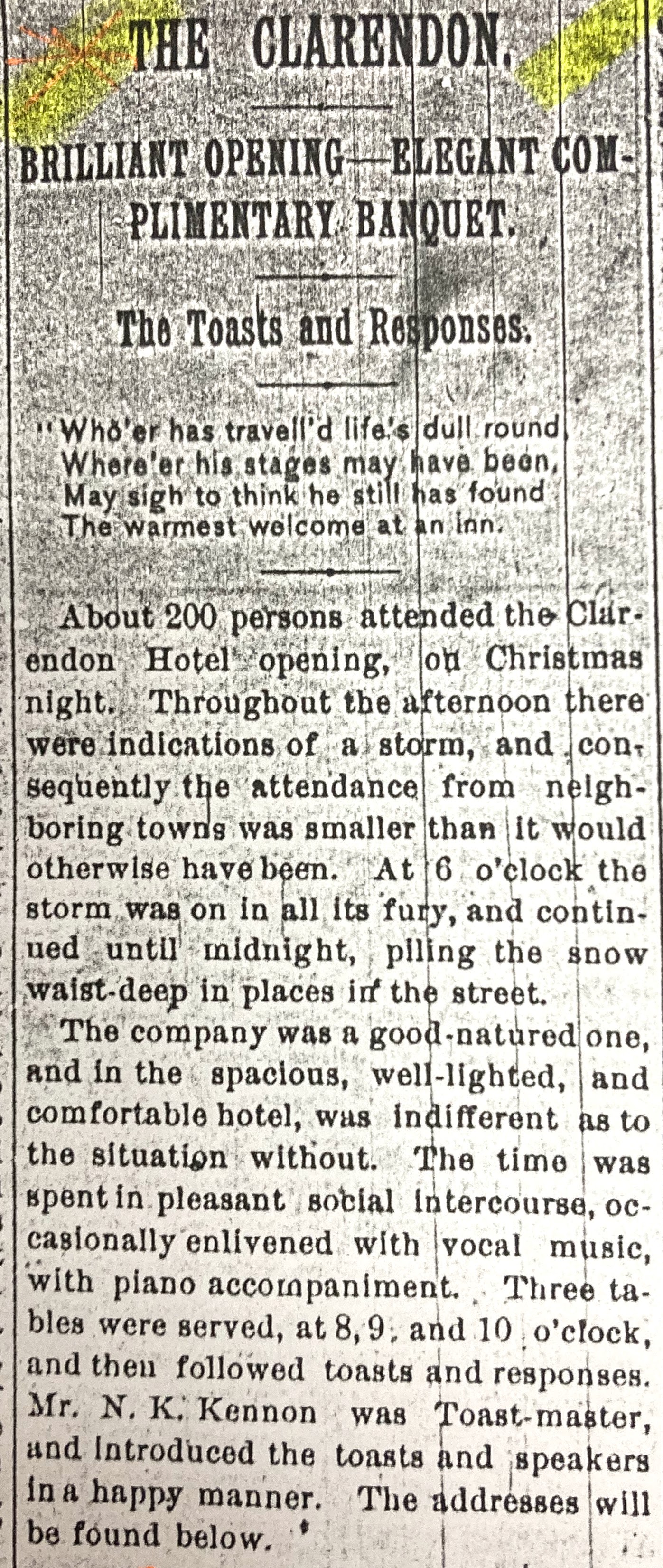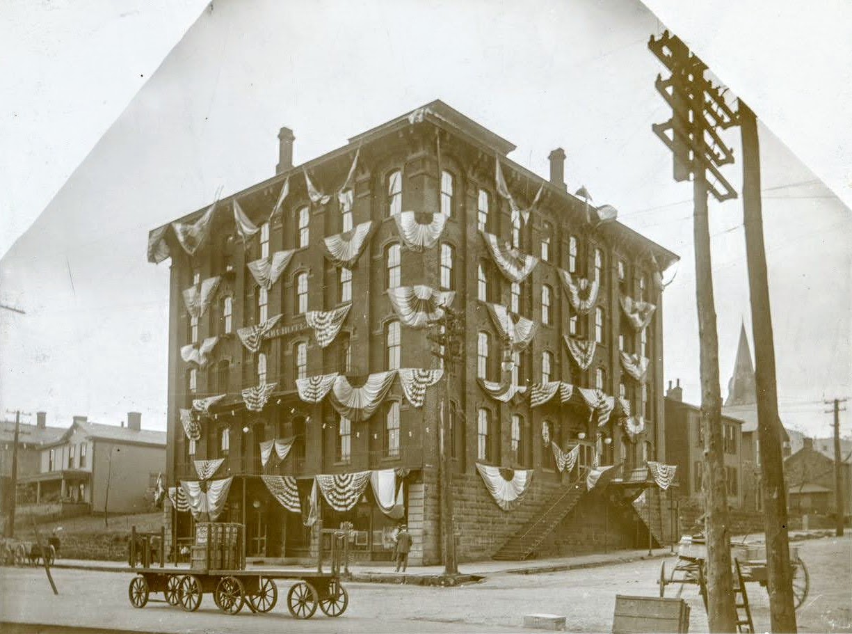 There are some similarities between the Hotel Clarendon which opened in 1890 and the Hotel Holmes, a Yost design, which opened in Westerville in 1889.Restored and now apartments.