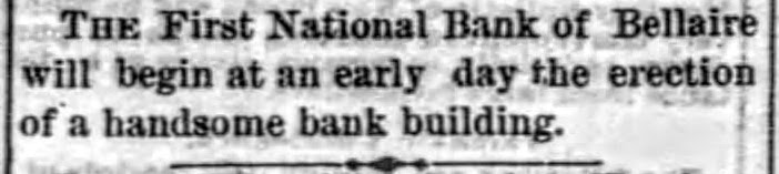 Barnesville: The People’s National Bank. 124 East Main Street. Built 1883. Photo credit: Barnesville’s 200 Years, A Pictorial History.Today, UGH to both the front and back.St. Clairsville Belmont Chronicle 3/20/1884. Sounds like more Yost to discover in downtown Barnesville. No clue yet as to where these were…and hope still are.Bellaire, Belmont County: First National Bank. Belmont Street at 32nd Sreet. Built 1880. Banners, flags, etc. are for the Free Fall Days Festival. Photo courtesy of the Bellaire Public Library.St. Clairsville Belmont Chronicle 1/29/1880.George W. Yost, Warren’s brother, was president of the bank.First National Bank on the right. On the left across the street is First Presbyterian Church designed by Yost (more on that later). Photo courtesy of the Bellaire Public Library.Bellaire: Hotel Windsor. Union Street at Central Avenue (renamed 34th Street). Built 1875. Razed. Photo courtesy of the Bellaire Public Library.St. Clairsville Belmont Chronicle 11/19/1874. Water Street is an error.Hotel Windsor facing the Ohio River. Photo courtesy above: Bellaire Public Library; below: Facebook page of My Hometown Bellaire Ohio.Bellaire: I.O.O.F. Lodge #378 (the long building directly above “33rd and Belmont”). Built 1890. First two floors housed businesses, and the lodge occupied the third floor. Photo courtesy of the Bellaire Public Library.The original look compared to the remuddle, second picture below. Ugh. The building on the right is now an empty lot. Photo credit: Facebook page “I Remember Growing Up in Bellaire When……”Photo credit: Facebook page of My Hometown Bellaire Ohio.The former I.O.O.F. building as it looks today, above and below.