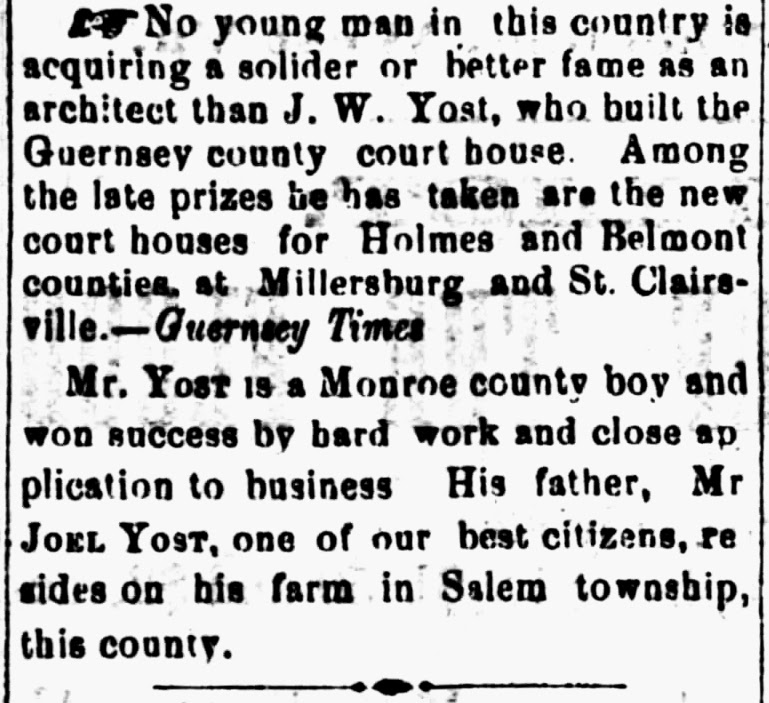 Architect Joseph Warren Yost in Ohio, 1870-1899: his early designs…and a selection of those that followed.