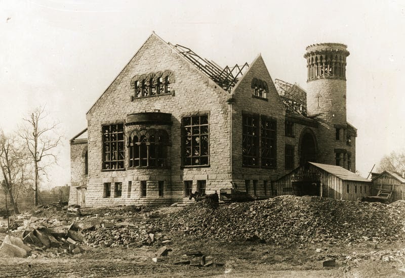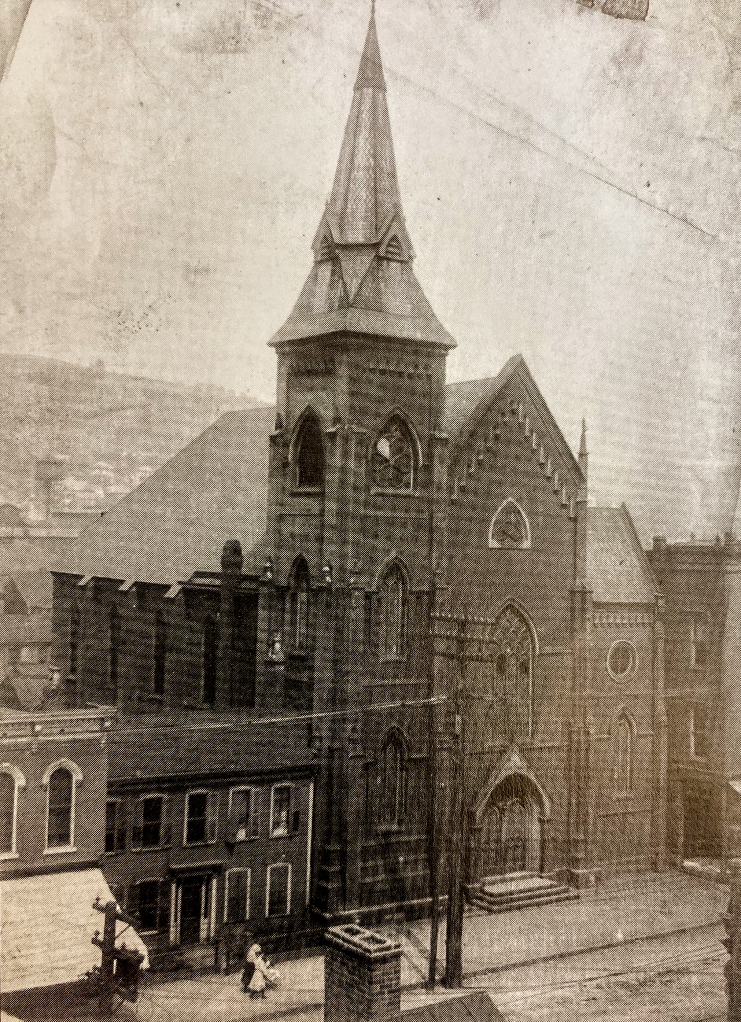 Last paragraph identies Yost as architect. St. Clairesville Gazette 5/1/1890.Bellaire: Columbia Theatre and Opera House. 33rd Street between Guernsey and Hamilton Streets. Built 1899. Destroyed by fire. Photo courtesy of the Bellaire Public Library.The Columbus Dispatch 11/18/1899. It’s likely Yost designed the Columbia as one of his last projects before relocating to New York City in 1900. Packard likely saw the project to completion.Bellaire: First Presbyterian Church. Belmont Street between 32nd Street and 33rd Street. Built 1871. This was likely the very first church designed by Yost as his architecture practice had just opened the year before. Razed.Photo courtesy of the Bellaire Public Library.This structure replaced First Presbyterian Church. Photo credit: Facbook page of My Hometown Bellaire Ohio.Bellaire: Second Presbyterian Church. Noble Street at 43rd Street. Built late 1870’s. Razed and replaced by another building (not designed by Yost) that was later occupied by Trinity Episcopal Church. Photo courtesy of the Bellaire Public Library.St. Clairsville Gazette 8/4/1887. First and Second Presbyterian merged at some point, but the frame Noble Street church was not replaced until sometime between 1900-1908 per Sanborn Fire Insurance maps. As mentioned above, the design was not by Yost. Be interesting to see what the “handsome structure”Yost proposed two decades previously looked like.Bellaire: Trinity Episcopal Church (to the right of the school building). Noble Street between 40th and 42nd Streets. Built 1879. Razed. Photo courtesy of the Bellaire Public Library.Two move views, above and below, of Trinity Episcopal Church (frame structure behind the group of children). Photo courtesy of the Bellaire Public Library.