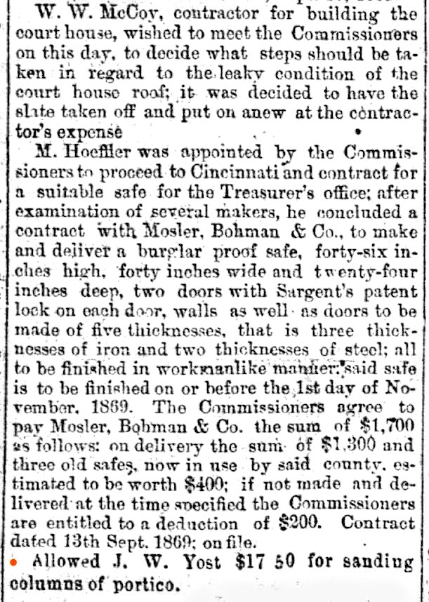 St. Clairsville Belmont Chronicle 6/19/1879. Cornerstone laying with Yost, a Mason, in attendance.