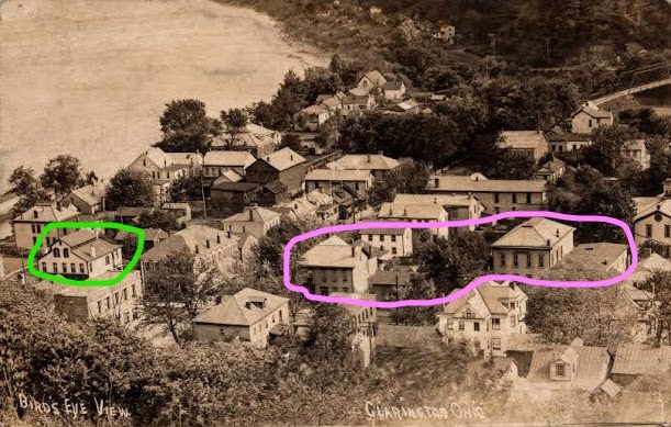 If Yost were to return to Clarington today, he would still recognize a portion of the village.The same scene today. The gray structure on the left is the same as the one pictured above it (also shown below circled in green). The structure next to it is gone, but the next block on the left is still in tact (shown below circled in purple followed by two current pictures of the structures in that block). The frame structures across the street in the old picture above have been razed and replaced. When State Route 7 was widened to four lanes, the many Clarington structures that lined the Ohio River, such as these above, were razed.State Route 7 paralleling the Ohio River in Monroe County looked like originally.Clarington at its peak long ago.