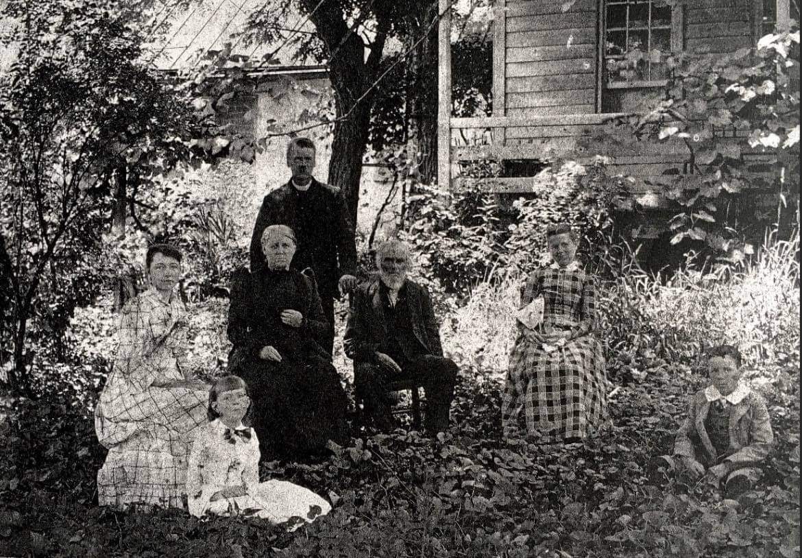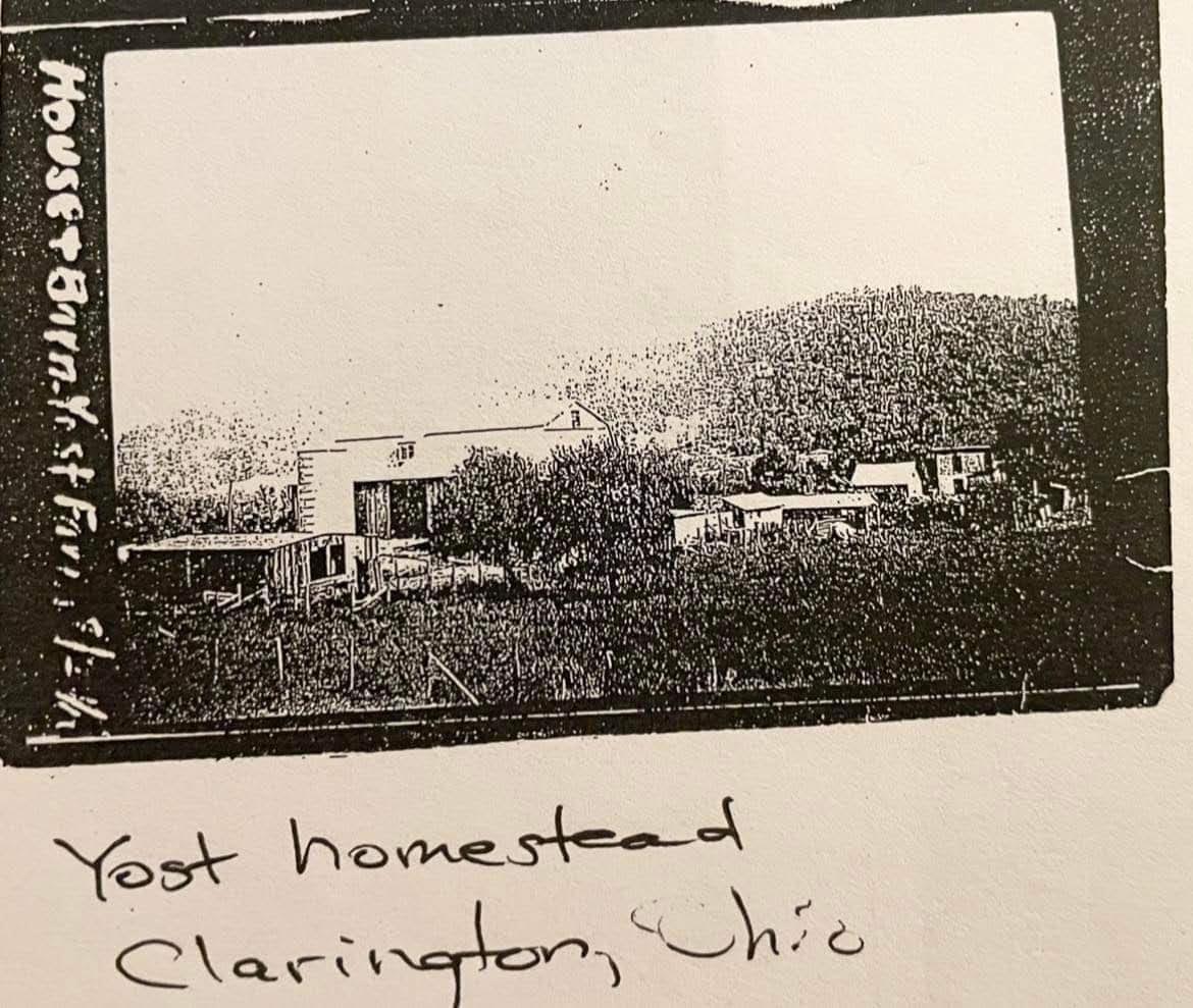 This blog starts with Joseph Warren Yost’s designs in Belmont County where he began his architecture career and in the county of his roots, Monroe.The farm of Joel and Mary Yost and their 11 children was located a few miles north of Clarington in Salem Township. Photo credit: Steven Flower.Warren Yost standing, parents seated in front of him. Seated in the bold plaid dress is Yost’s daughter Mary Alma. His son Benjamin and daughter Nancy are sitting on the ground. The lady behind Nancy is unidentified and thought to perhaps be a nanny.Photo credit: Steven Flower.Yost, likely taken at the farm. Photo credit: Steven Flower.