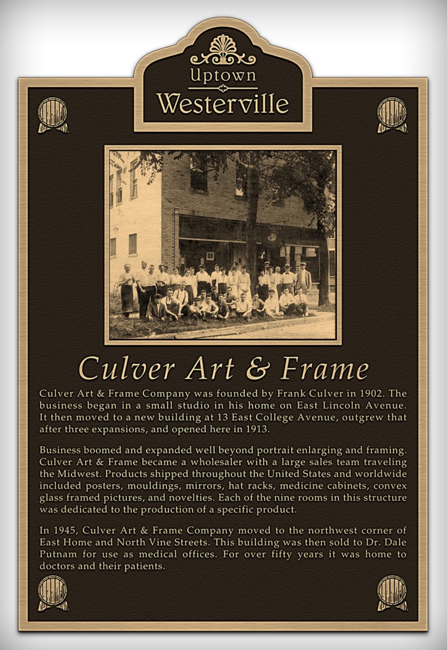 74 North State Street. Culver Art & Frame built in 1913. Today houses Birdie Books. Culver is still in business and located in Lewis Center. Photo credit: Westerville History Museum.