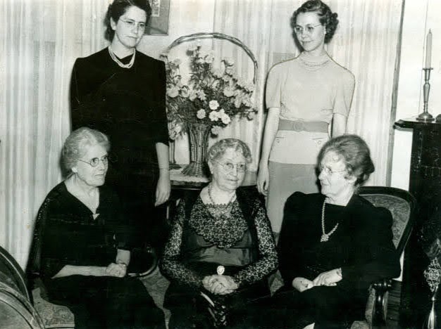 Ella Scofield Harnett, seated in the middle. After Fred passed away in 1906, she remarried. She died in the house in 1946 after having lived there for 57 years.