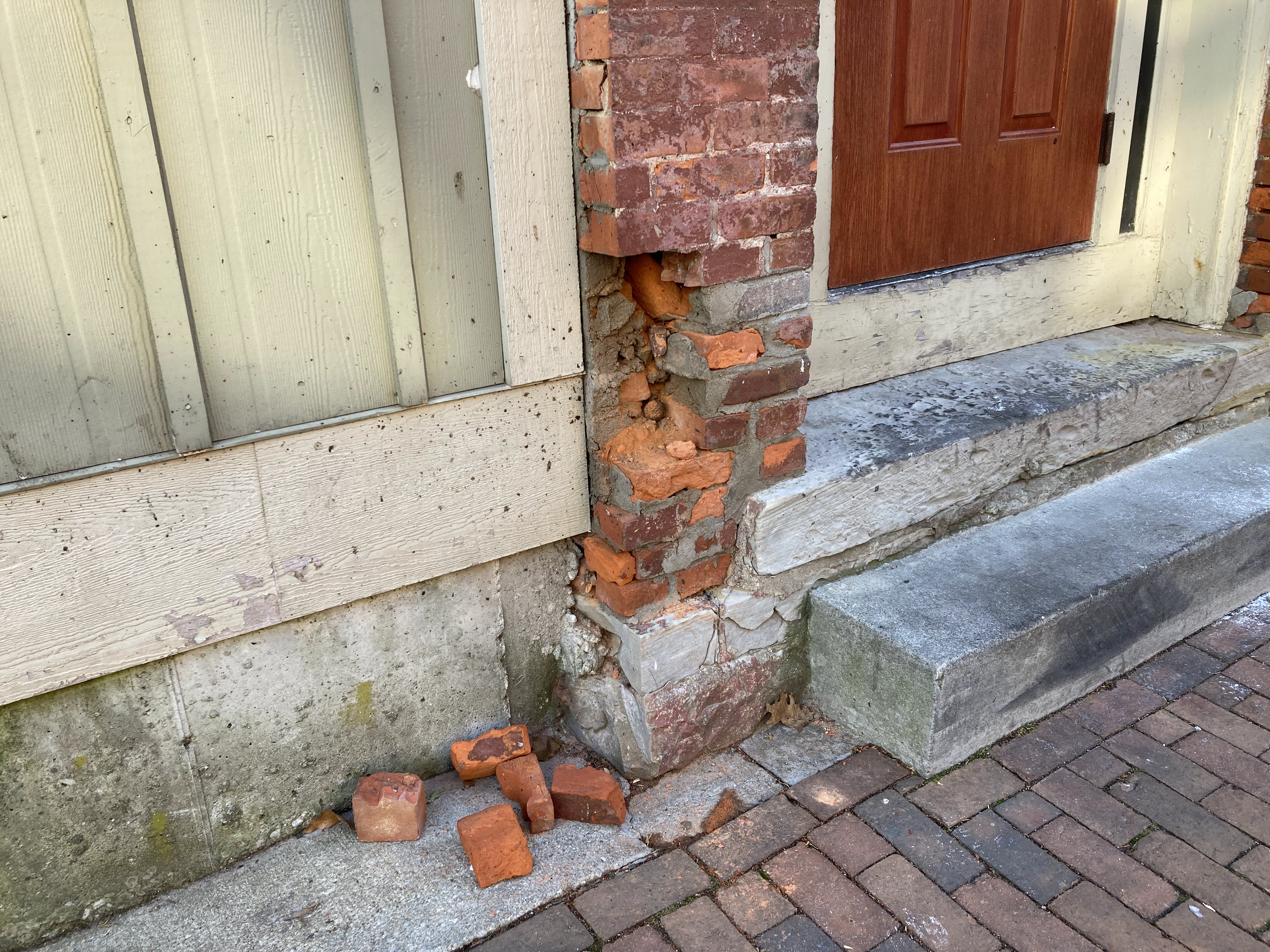Soft brick of the Weyant Block (Old Bag of Nails Pub).