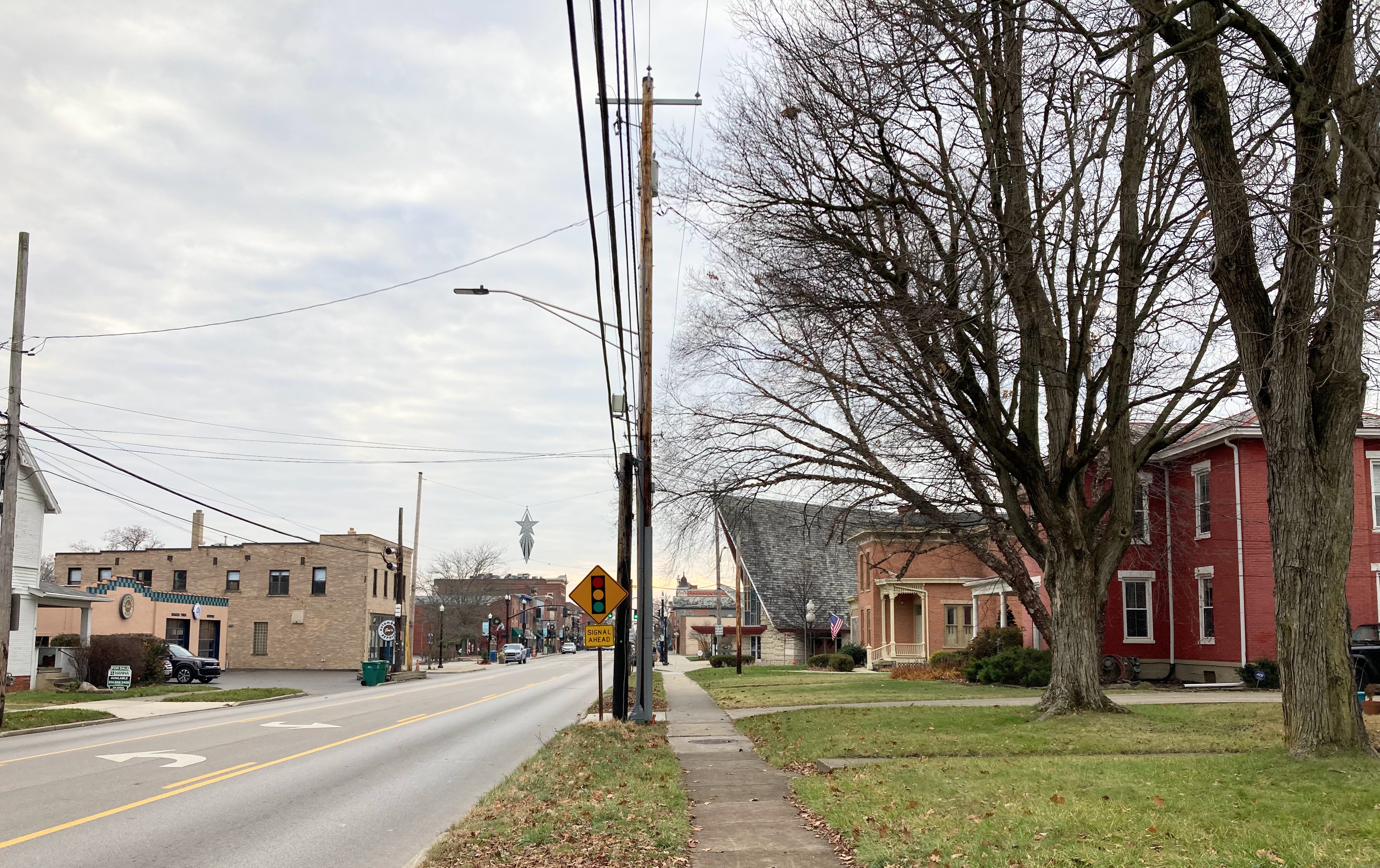 The December 5, 1935, edition of the Westerville Public Opinion newspaper reported “The business section of the village has taken on a holiday appearance with the erection of the Christmas decorations. A noteworthy addition this year is a huge star electrically lighted and hanging high over the street at the corner of State and Main. The star was made by George Alexander. Stores are now displaying their holiday merchandise and Christmas shopping will get under way in earnest in a few days. Shop at home is a slogan to bear in mind.”