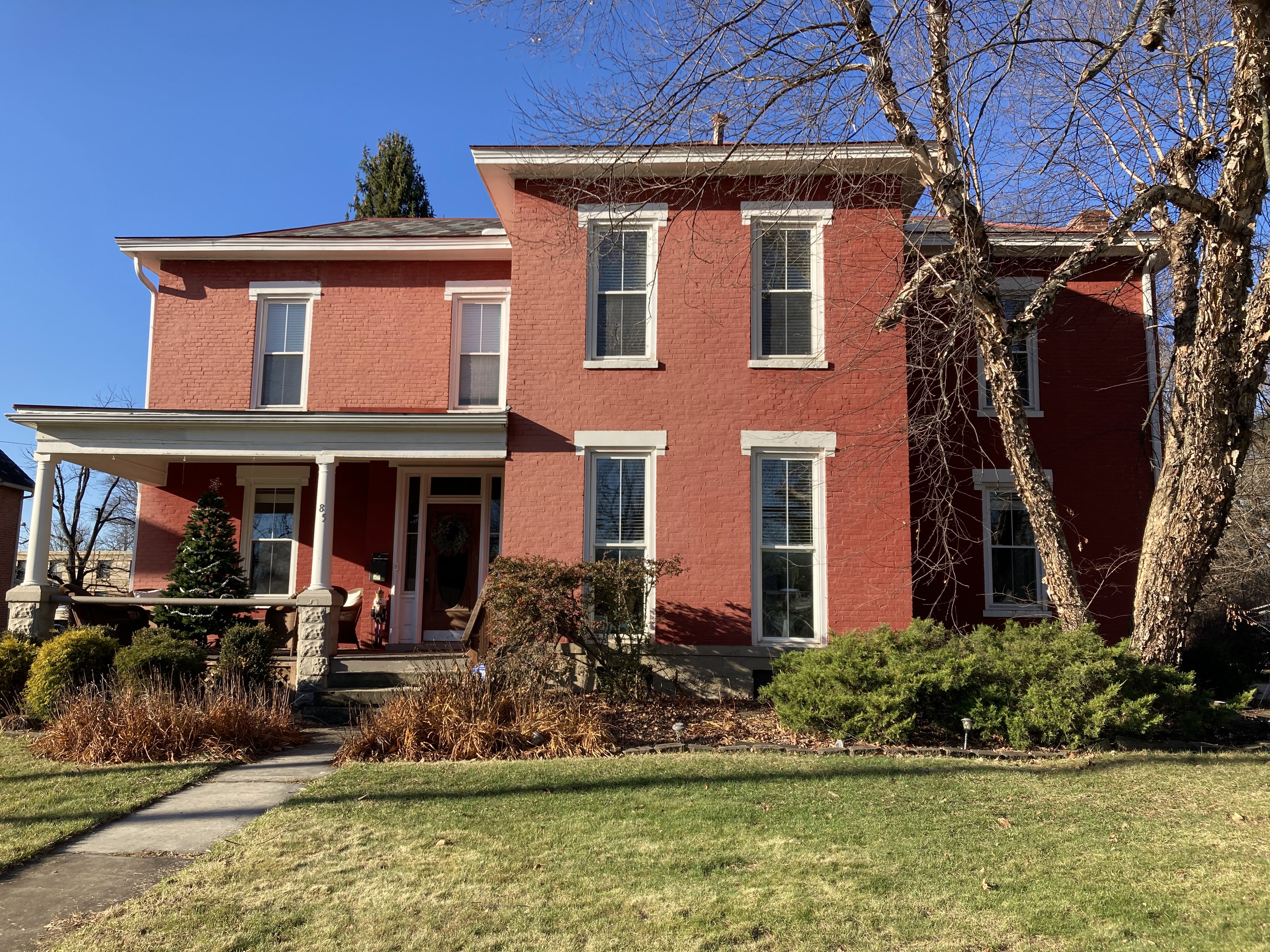 85 North State Street. Residence of Henry and Sarah Cheever “Sally” Dyxon and likely built circa 1875-1880. The Dyxons had 9 children. Mr. Dyxon owned H. Dyxon Drugs located, in 1872, at 34 North State Street (most recently housed Stone and Sparrow Apparel; future occupant is Little Sparrows Boutique). Pictured above are the second occupants of the house, the family of Dr. George and Isabel Scott. Dr. Scott was a member of the Otterbein faculty from 1870-1931 including serving a term as president of the University. Mrs. Scott taught art at Otterbein from 1893-1912. Photo credit: Westerville History Museum.