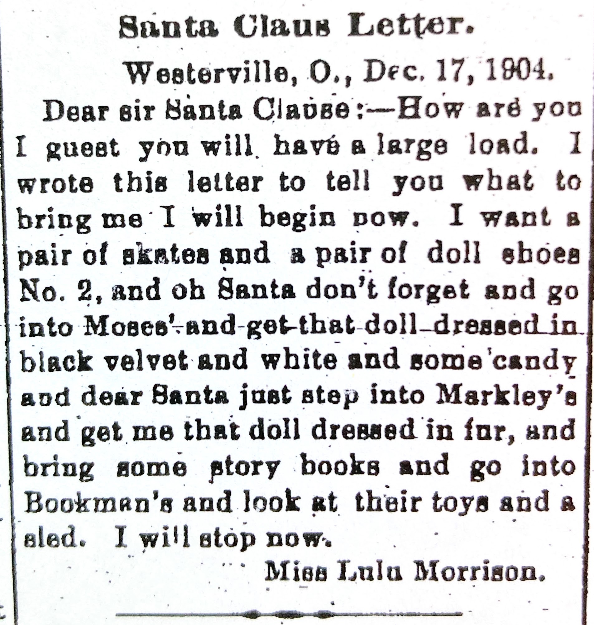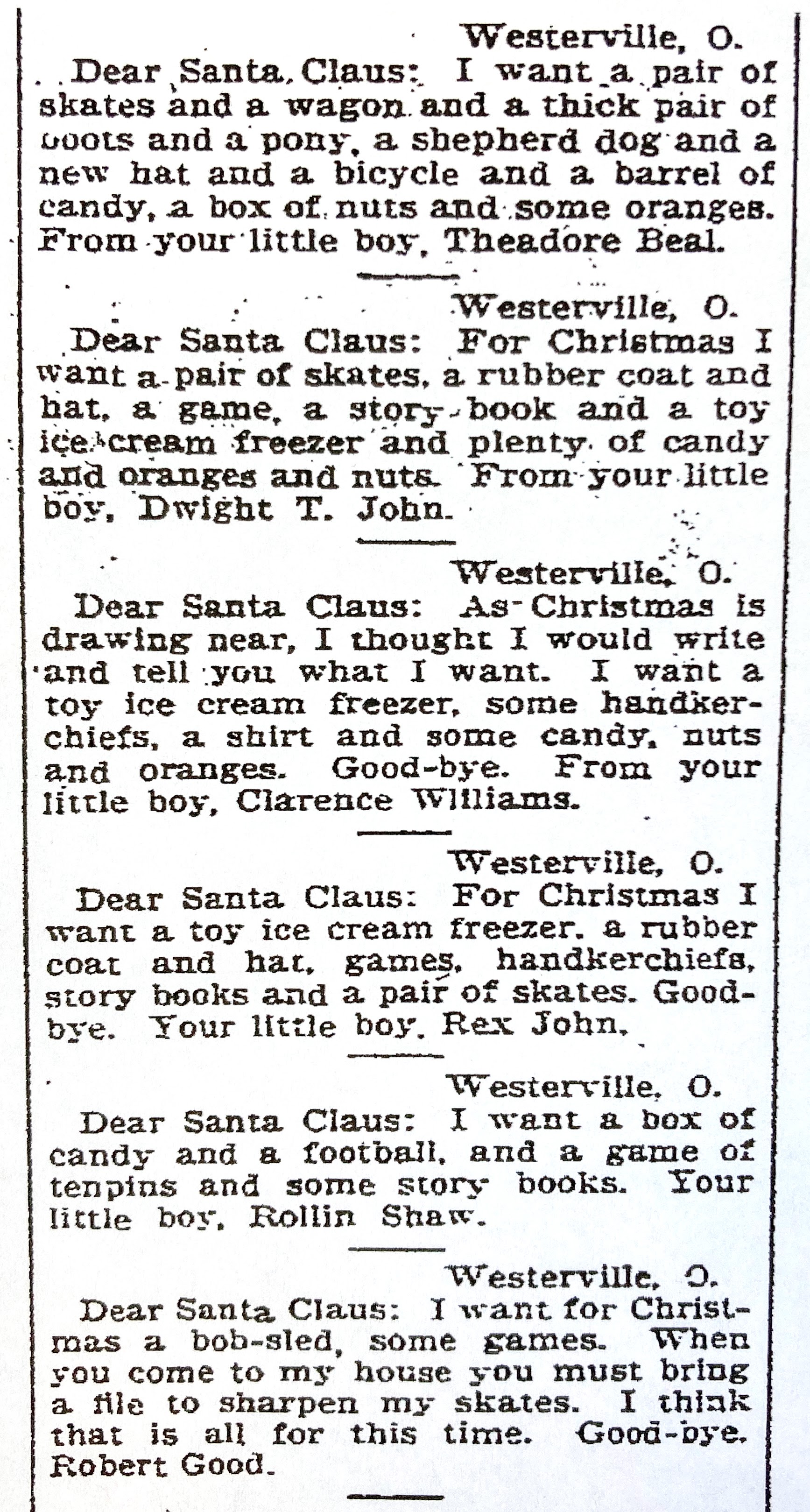 Great Christmas tribute! Glad to hear the star has been refurbished and hung back up on Main St. Love the children’s Christmas letters to Santa. Times have really changed. Just imagine what kids are asking for this year!