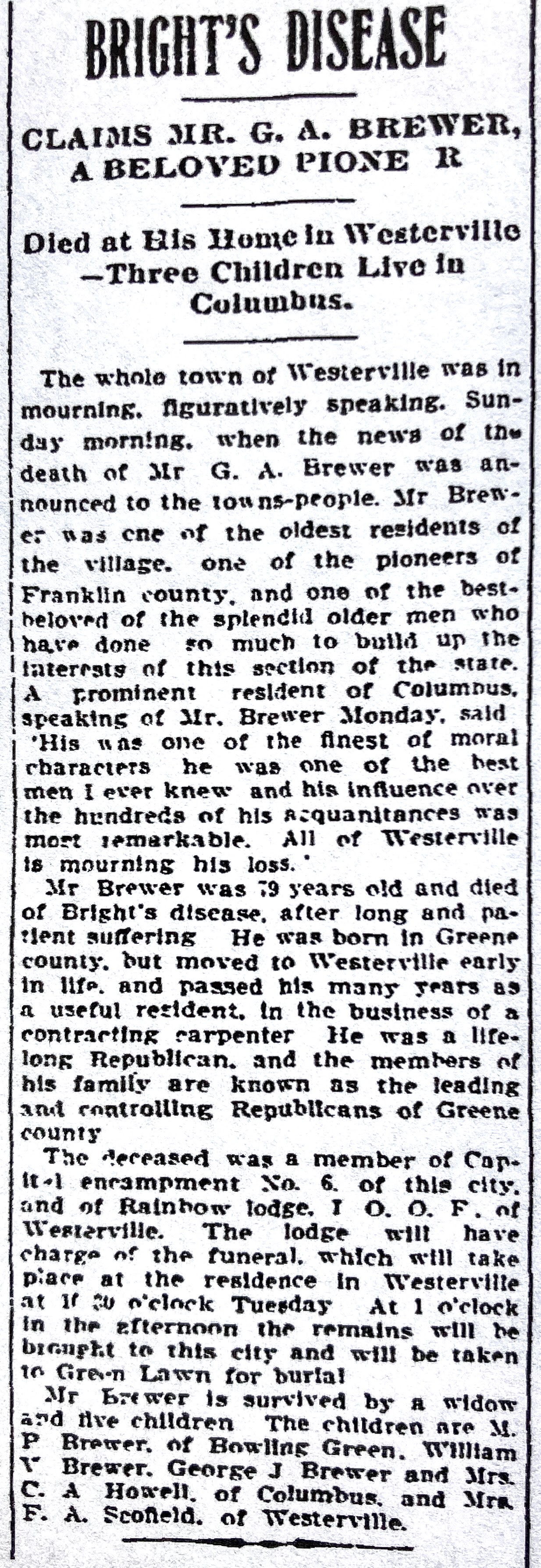 Public Opinion 4/13/1903. The house was likely built by Fred and his first wife Martha who passed away in 1886. Fred remarried Ella Brewer in 1889. Her father George may have been the original contractor.