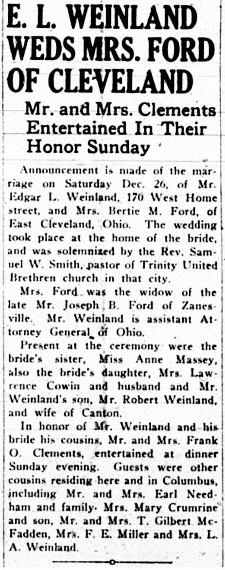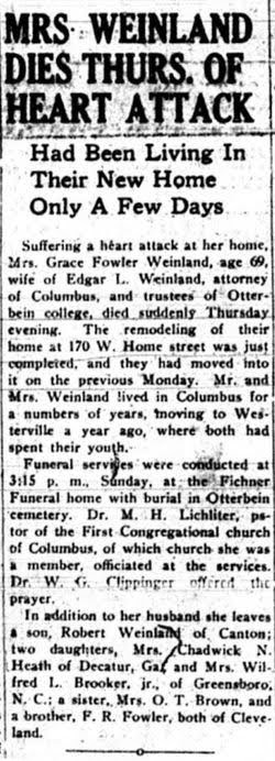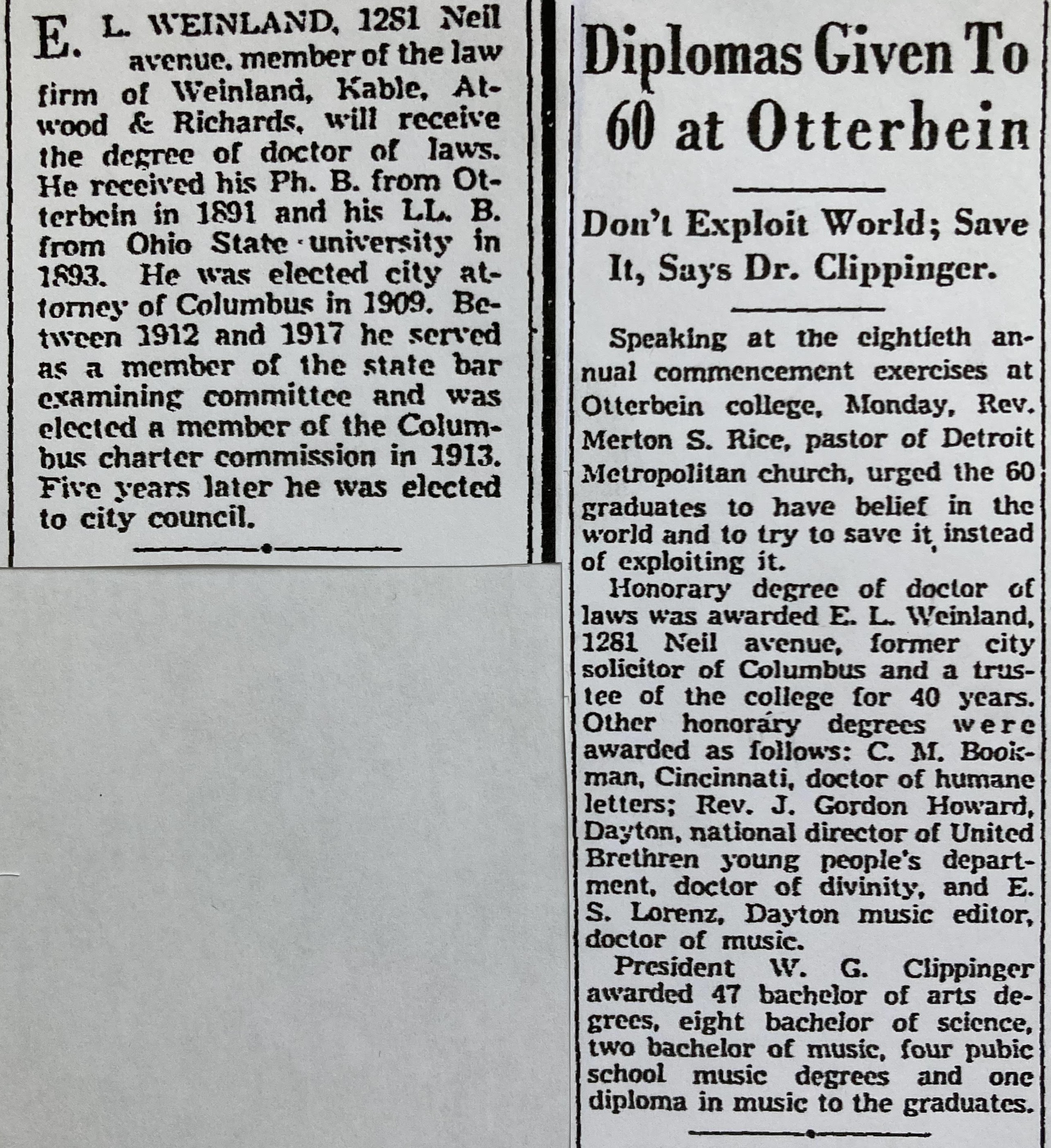 After Luella’s passing at age 53, Frank later married Vida Shauck. The Clements were major Otterbein benefactors, and Clements Hall is named for them. They are interred at Otterbein Cemetery.Photo credit: Dayton Daily News 6/14/1920.