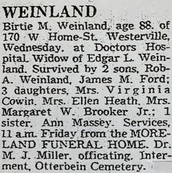 The Columbus Dispatch 1/23/1939. Joseph F. is incorrect in Mary’s obituary. Should be F. Joseph.