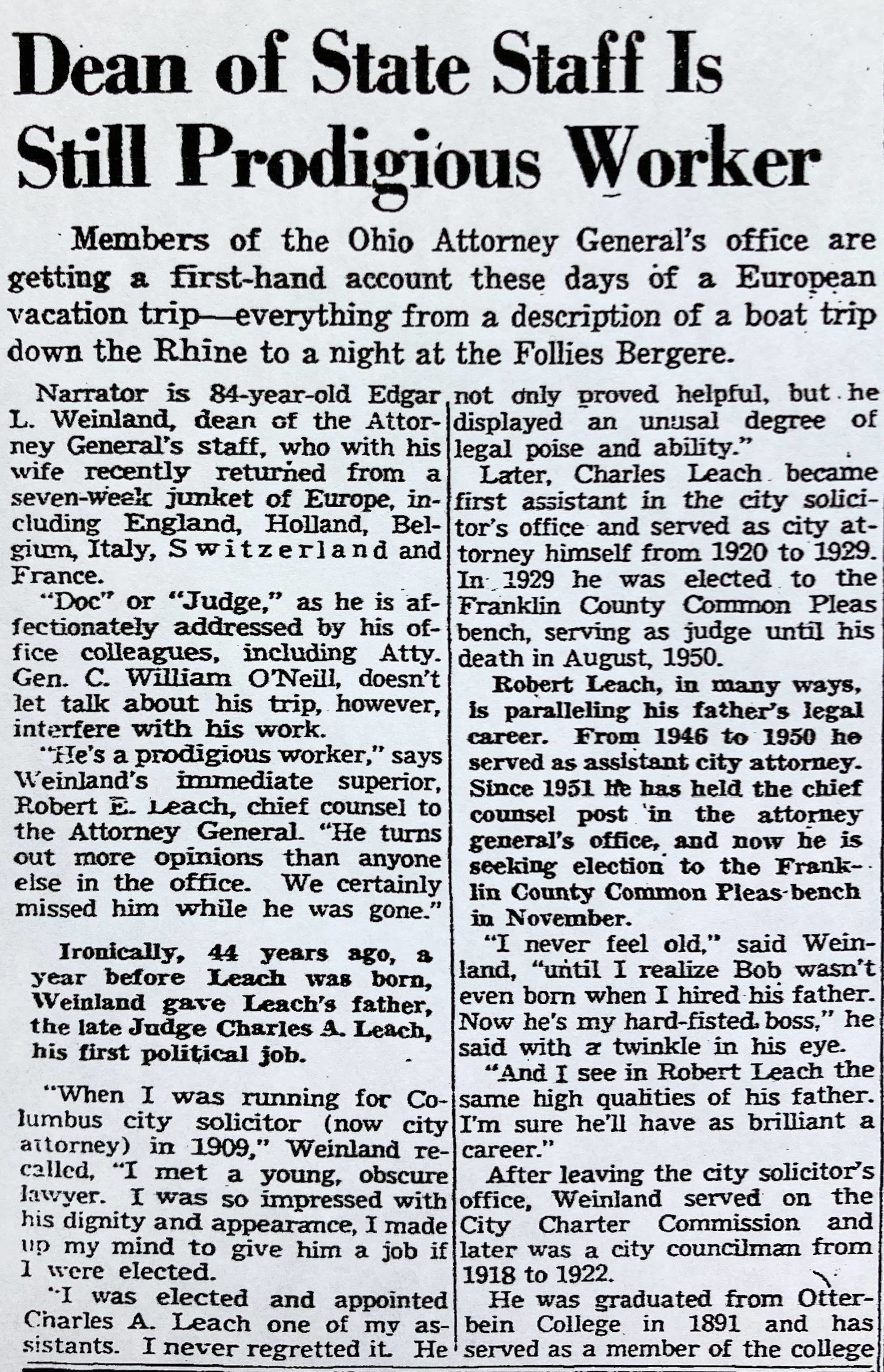 The Columbus Dispatch 7/11/1950. Frank Davis was a statistician with the Ohio Bureau of Coal Statistics.