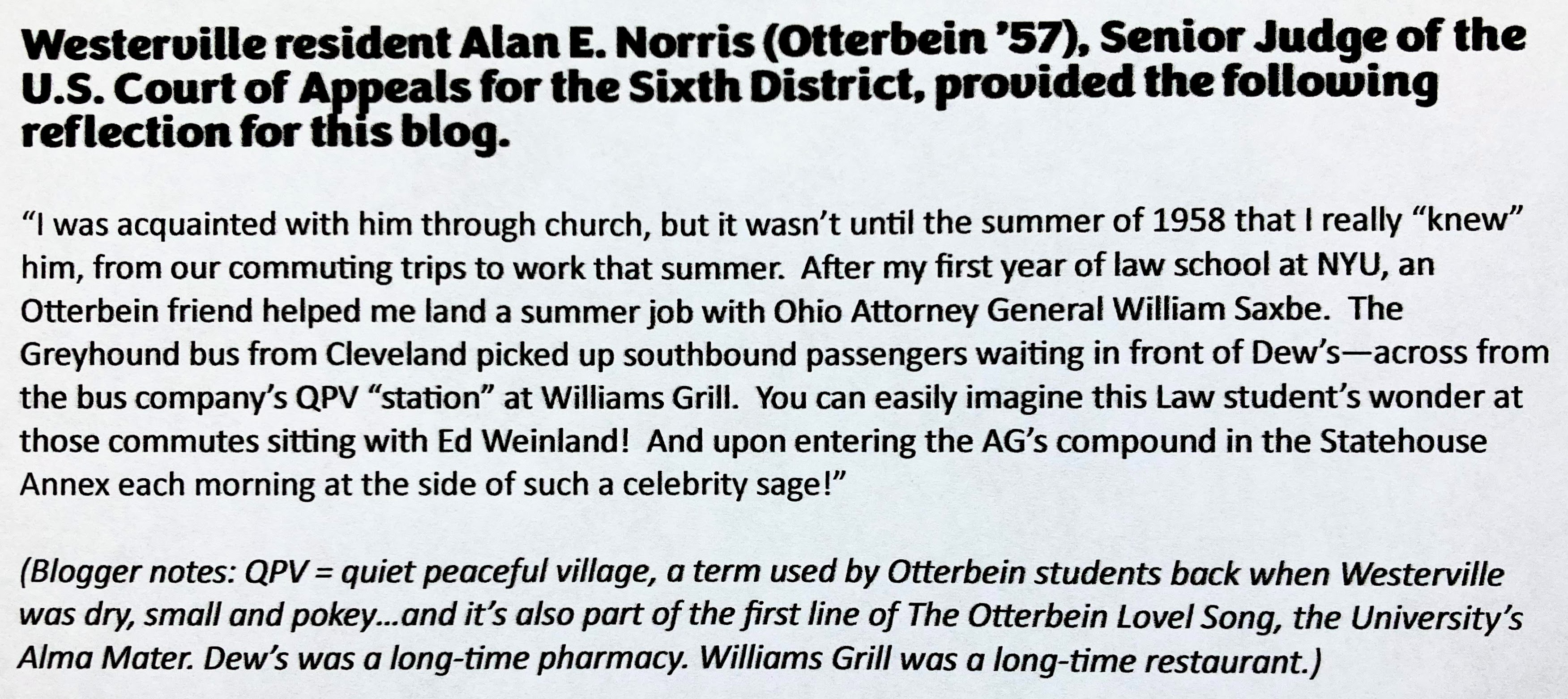 Reflection from a blog of Otterbein Professor Dr. David Deever: