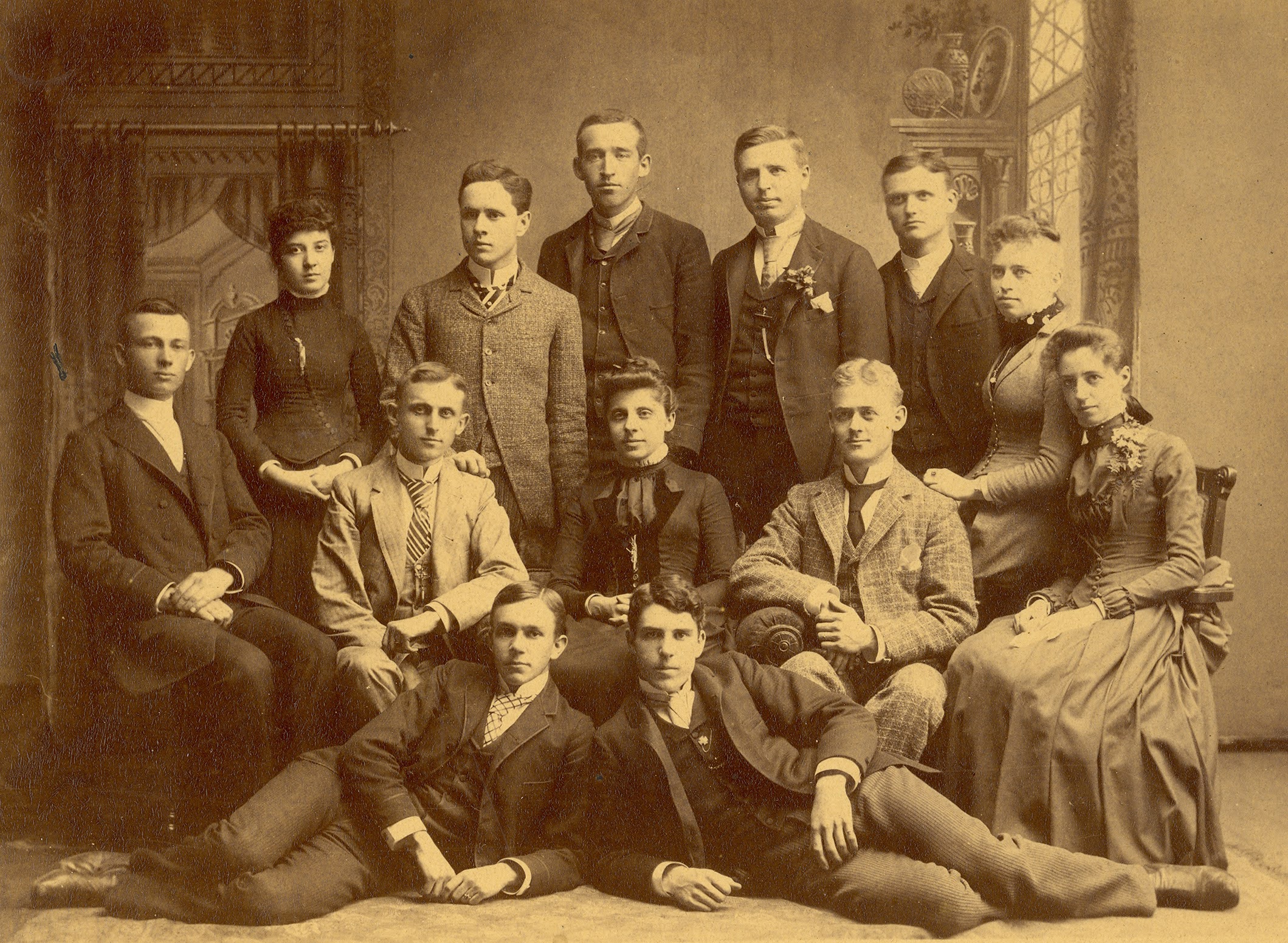 E. (Edith) Luella Fouts was the first “physical director” as referenced in the Rules above. Luella’s actual title was Director of Physical Culture. Photo credit: Otterbein University Archives.Pictured at top left is Luella with her Otterbein graduating class of 1889. Photo credit: Otterbein Archives.