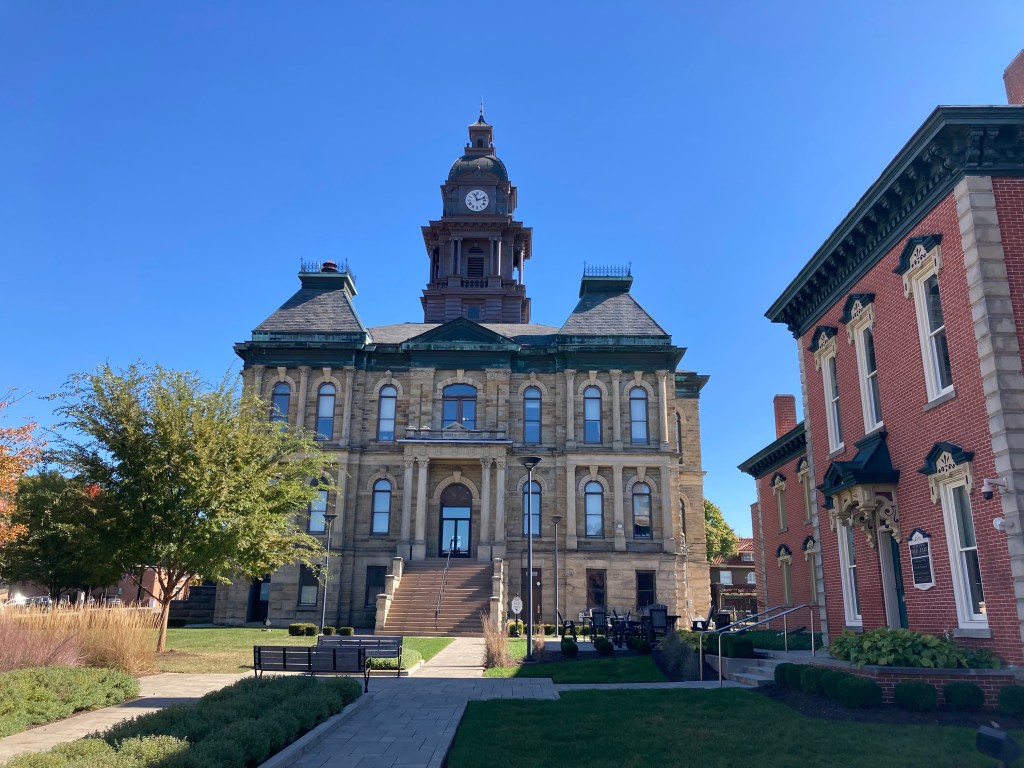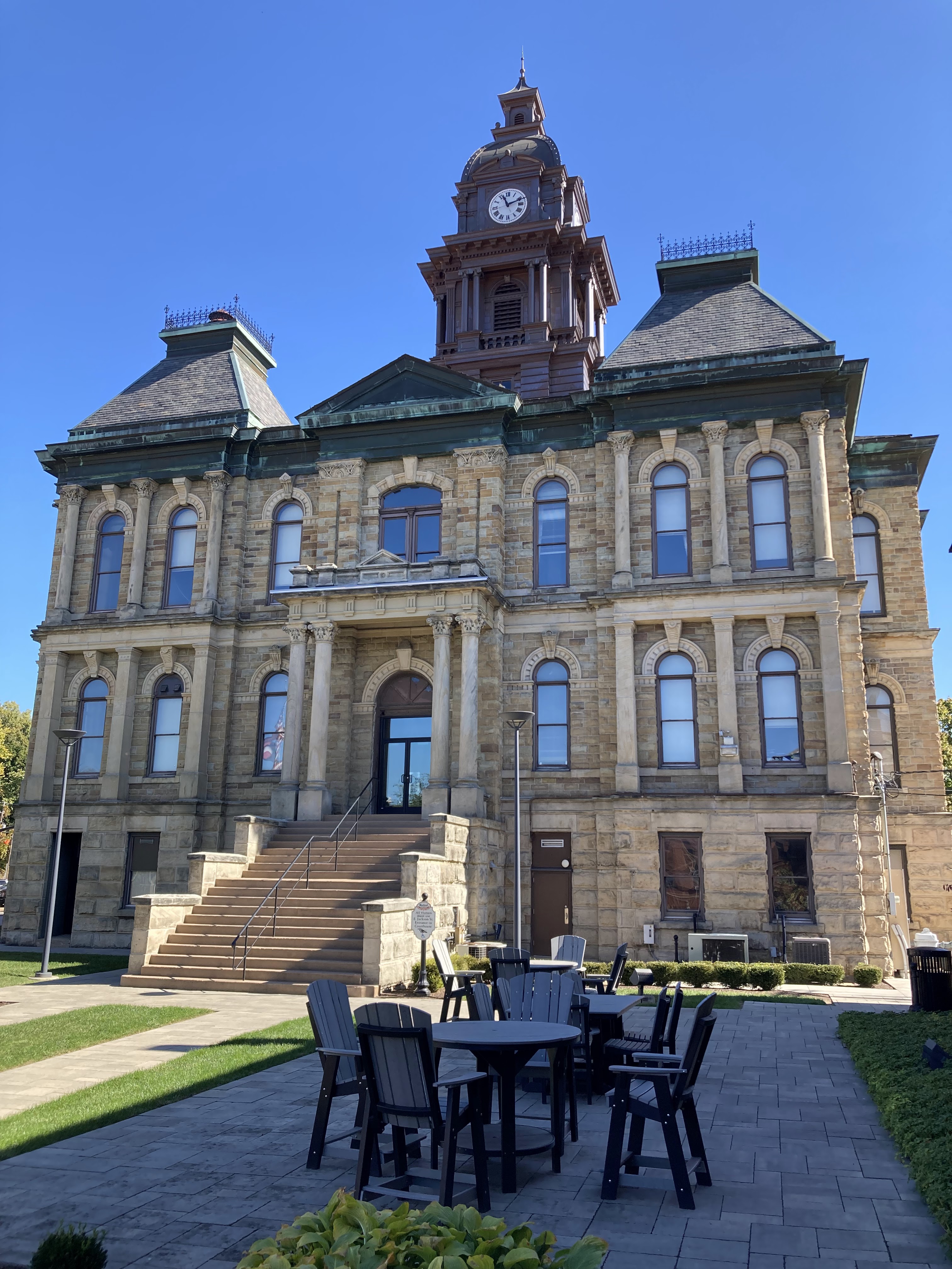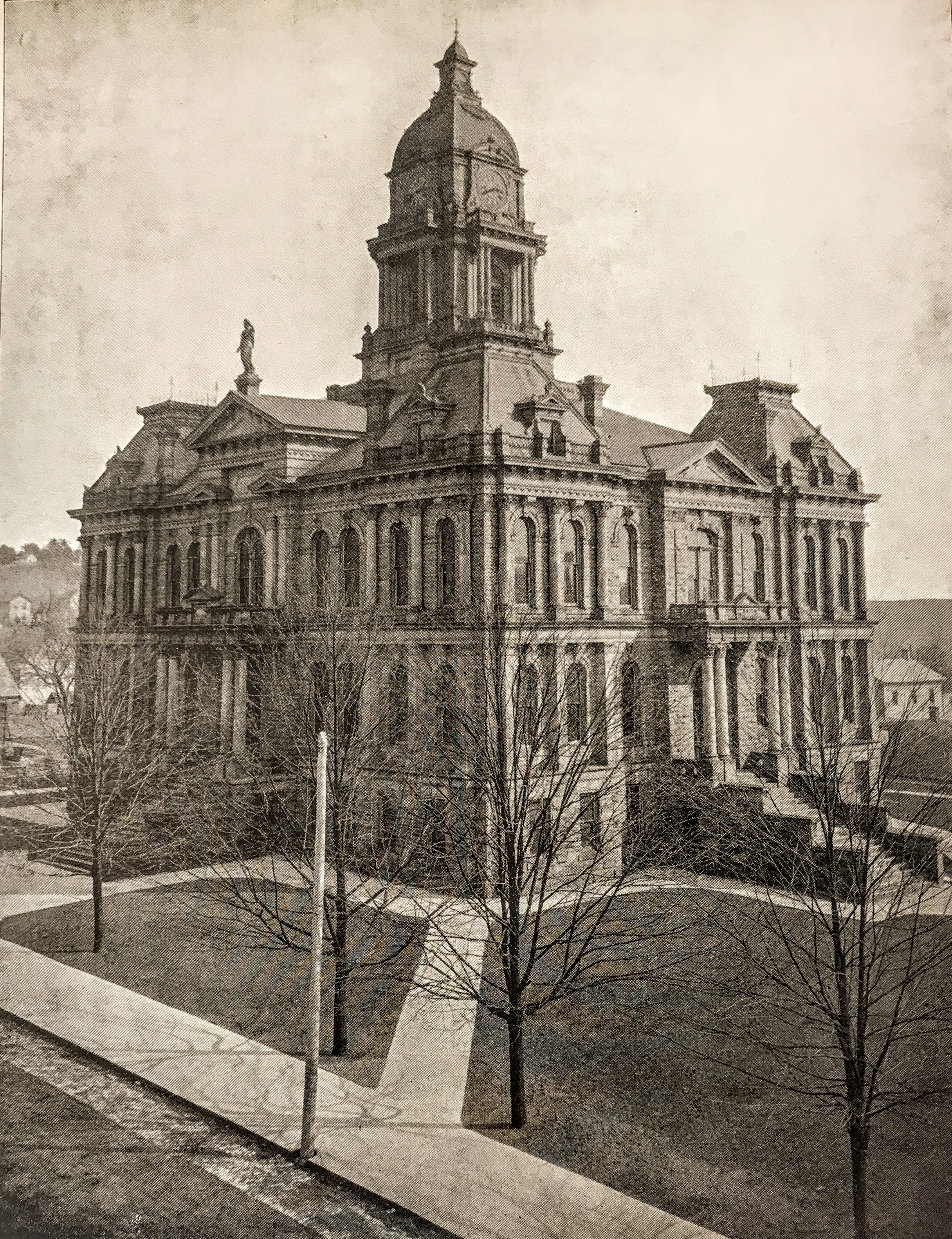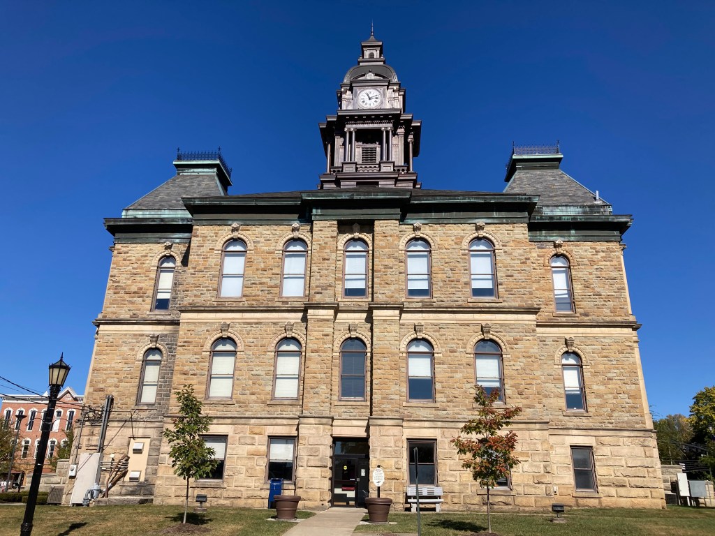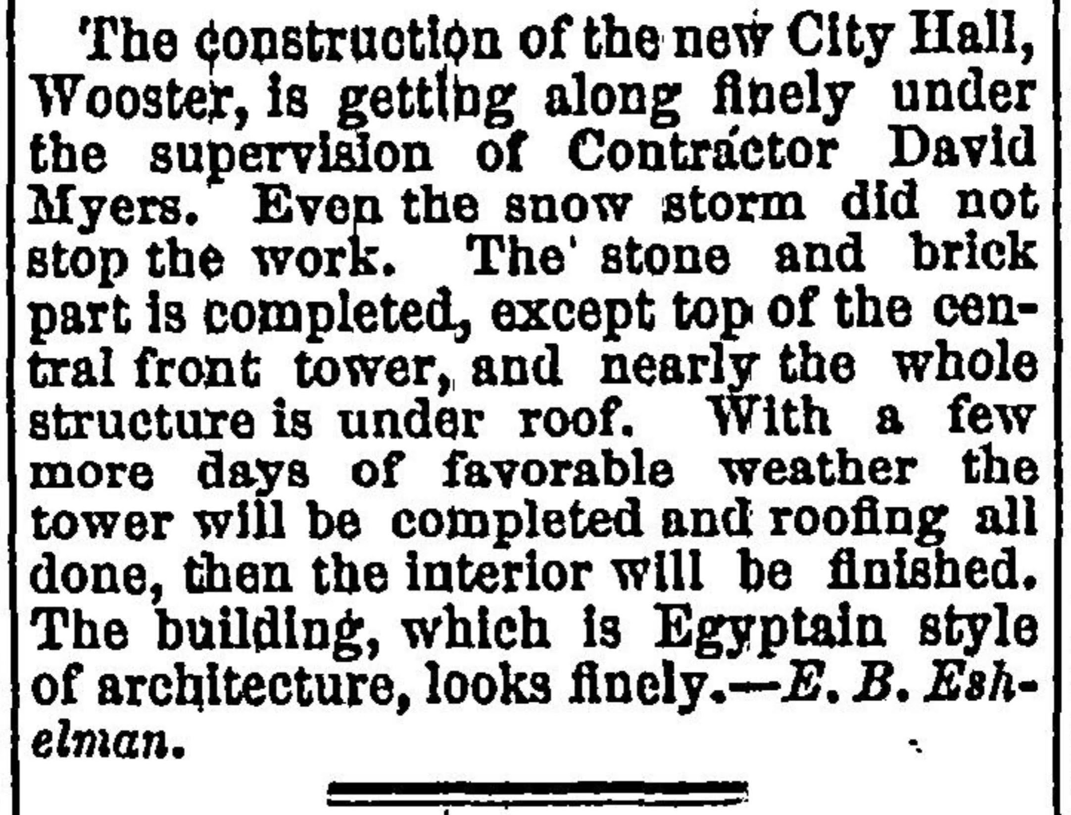 Holmes County: expect the unexpected on the back roads.Glenmont: public school. SW corner Glenmont & Monroe Streets. Built 1901. Designed by Packard.Razed.Photo credit (and also the 3 below): Holmes County District Public Library.The Packard-designed building was razed and replaced by this new build in 1920 (not designed by Packard).Today the 1920 building is no longer used as a school. Students in the Glenmont area attend schools in the West Holmes Local School District.Millersburg: Holmes County Courthouse. 1 East Jackson Street. Built 1884-86. Designed by Yost.Listed on the National Register of Historic Places. Photo credit: Yost & Packard’s promotional publication Portfolio of Archtectural Realities.The courthouse under construction. Photo credit above and below: Holmes County District Public Library.