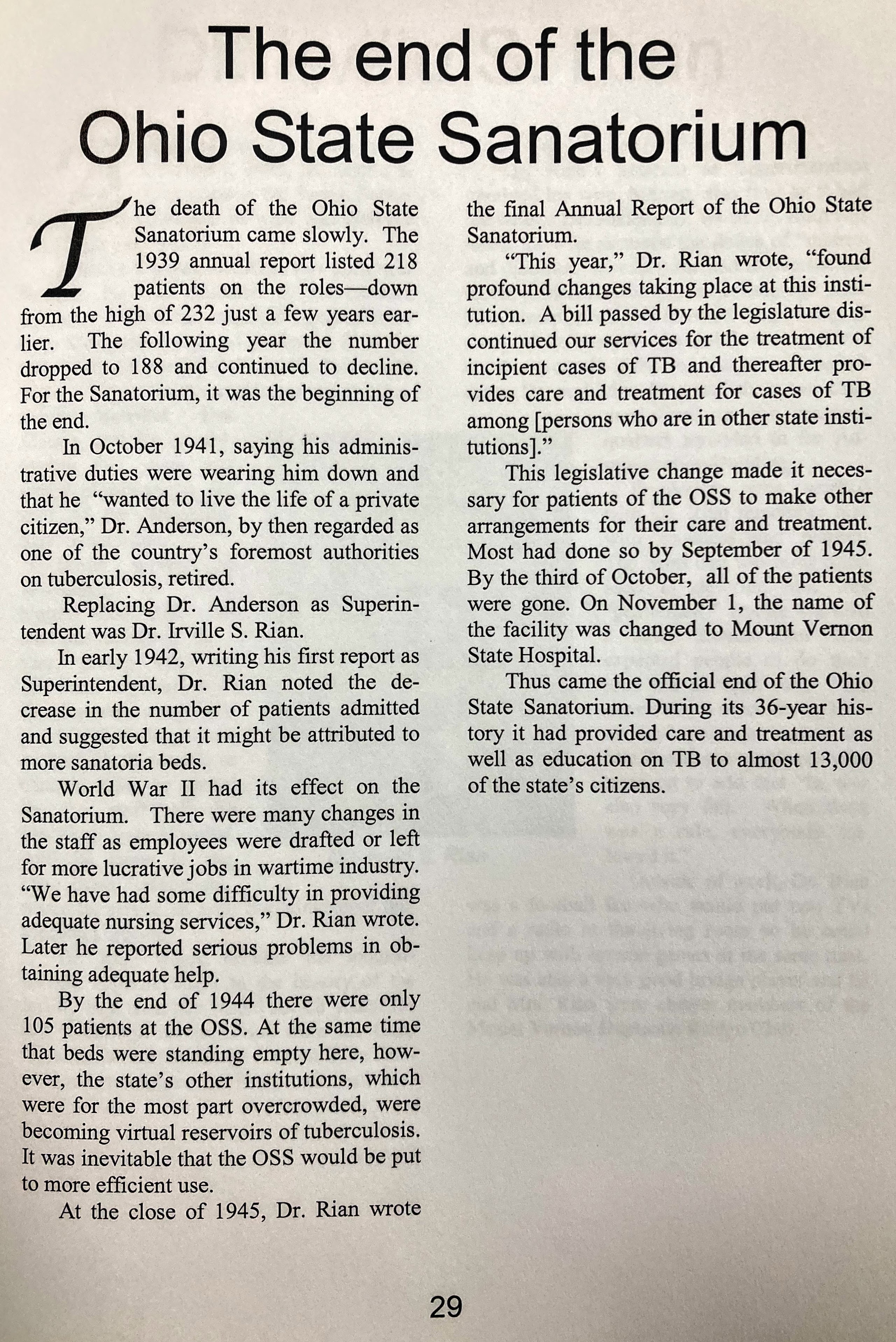 Photo credit above and below: A Century of Service 1909-2009. The Ohio State Sanitorium. Mount Vernon State Hospital. Mount Vernon Institute. Mount Vernon Developmental Center.