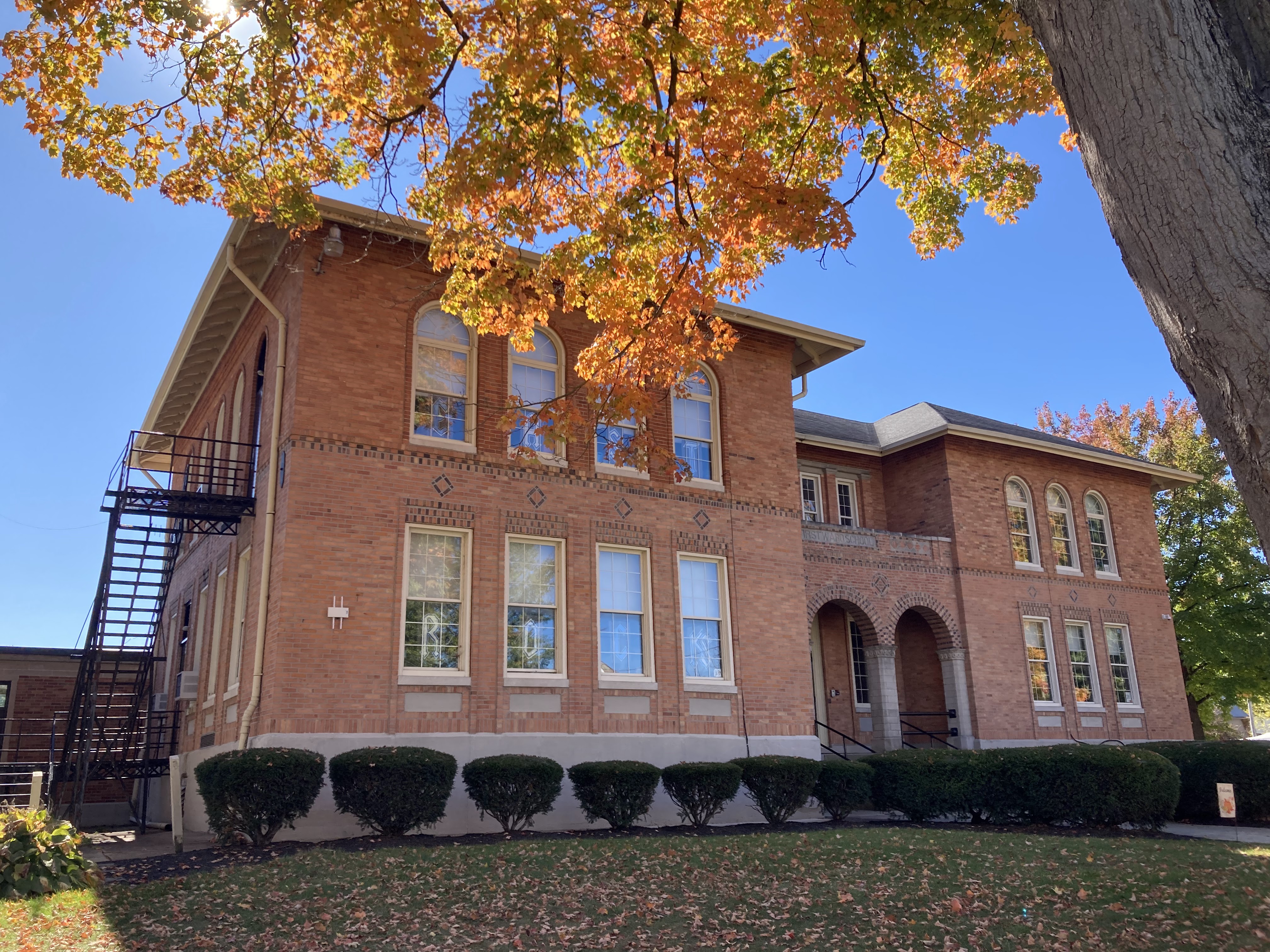 Today. Connected to a much larger building that sits in front of the Packard design.Based on the picture on the right, perhaps the east side of the building was the main entrance. Photo credit: Holmes County District Public Library.The Packard design is part of this much larger structure today.
