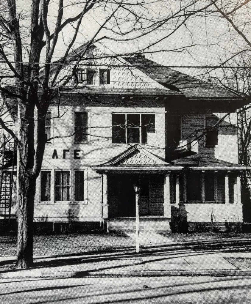 An opposite corner neighbor to the Sosh building at South Grove and West Park Streets was the home of Purley and Lillie Baker (at left). Note the greenhouse to the right of the Baker house. Purley was General Superintendent of the Anti-Saloon League of America based in Westerville. The property originally consisted of 11 acres including a greenhouse pictured to the right of the house. The Bakers sold vegetable plants and also had a milk house to run a dairy service. The Baker property was known as “Greendale.” Later, it was the first location of the Westerville Public Library. Today it’s Otterbein’s “Howard House” and is part of Temperance Row Historic District listed on the National Register of Historic Places. Pi Kappa Phi “County Club” Fraternity can be seen in the background at leftand the greenhouse at right.Circa 1970.Bird’s-eye view 1975.…and from the 1950’s. Photo credit: Westerville History Museum.Photo credit: above and three interior pictures below from the Otterbein yearbook Sibyl, Otterbein Digital Commons.