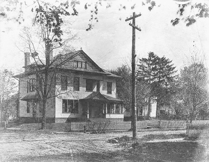 John James and Eve Koons Hoglen residence. 878 High Street, Worthington. Built 1906. The house was later moved to 153 Franklin Avenue. Designed by Packard.The house was located about where the parking lot is between the two buildings above in the HIgh Street (Rt 23) block just north of the Worthington Public Library, same side of the road.