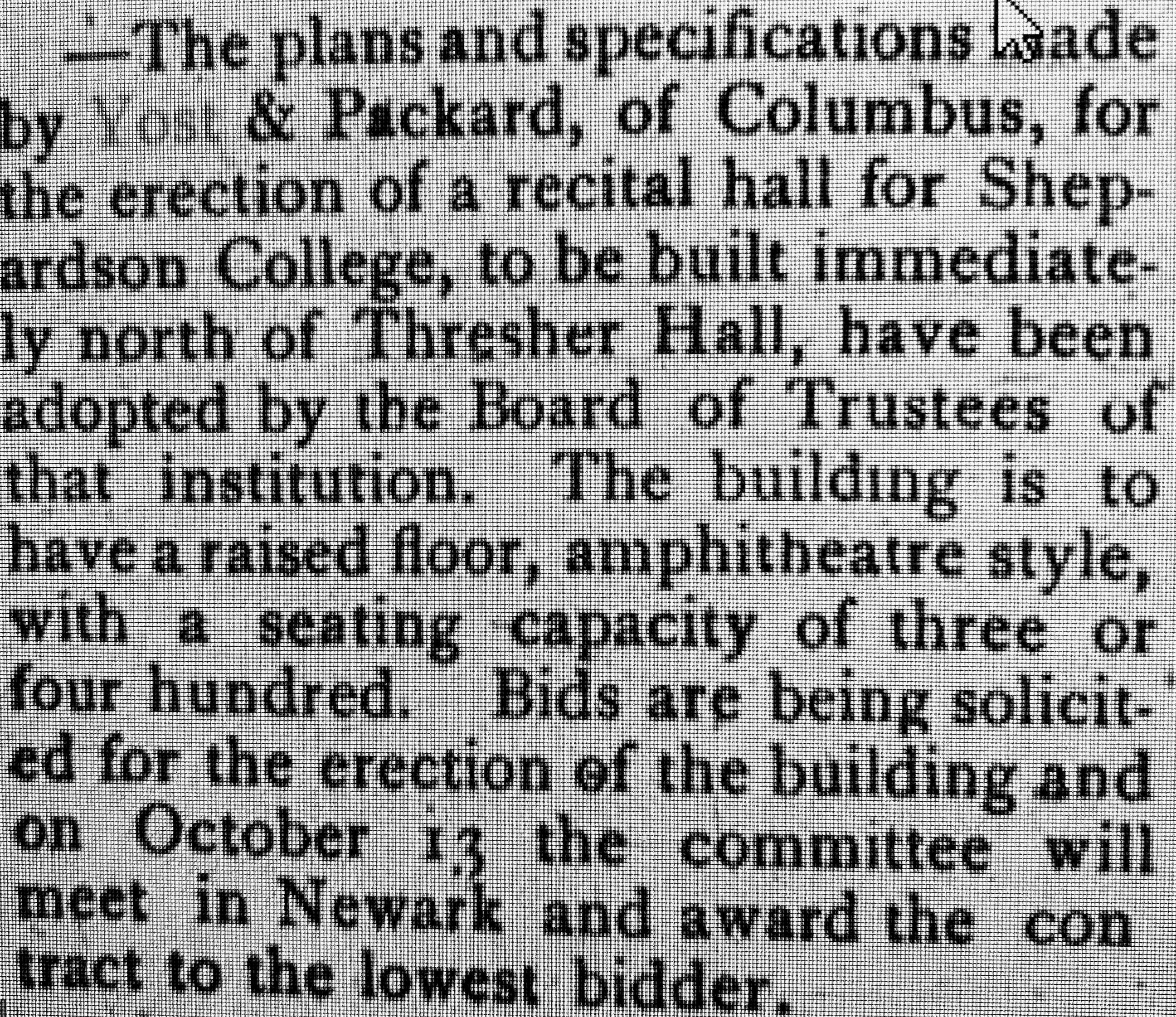 Marion: Pearl Street School. Built 1913. Designed by Packard. Razed. The playground picture below is the Pearl Street School first grade class of Mary Marshall Heppa taken in 1953.Marion: Silver Street School. Built 1893. Designed by Yost & Packard. RazedMarion: Grand Opera House. 130 South State Street. Built in 1893 and gutted by fire in 1910. Not designed by Yost & Packard, but the rebuild was designed by Packard at the same time he designed a new building for the Elks right next door.Marion Weekly Star, 8/3/1912.The Elks-owned opera house eventually became a theatre, but is mostly empty today. Elks Lodge #32 still occupies the building on the right. The Marion Star of 7/13/1912 stated that the lodge building on the right “will be constructed on different lines, giving the impression that it is simply an adjoining building.” Per the Elks website: this was the first Elks lodge in the U.S. to have a President, Warren G. Harding, as a member. The former opera house on the left appears threatened.A parade proceeding past the Grand Opera House/Elks Lodge.Marion: Jail. 118 North State Street. Built 1878. Severely damaged by fire. While the original architect is unknown, Packard was hired to put the building back in order in 1902/03. Razed.The above article appeared in The Columbus Dispatch of 7/22/1906. At that time, the Marion Star was located at 227-229 East Center Street, shown on the left below. It moved to the building on the right, below, a number of years after both President Harding and architect Packard had passed away (1923). Packard’s 1906 design was never built. The reason is unknown.Marion: The National Wagon Company. Oak Street. Designed by Yost & Packard, this rendering appeared in the Marion Star of 4/10/1897. Very attractive front with a limestone base and the wagon wheel on top. Never built. The Marion operation “packed up” and moved to its existing Chillicotheplant as indicated below in the Marion Daily Star of 1/7/1898.