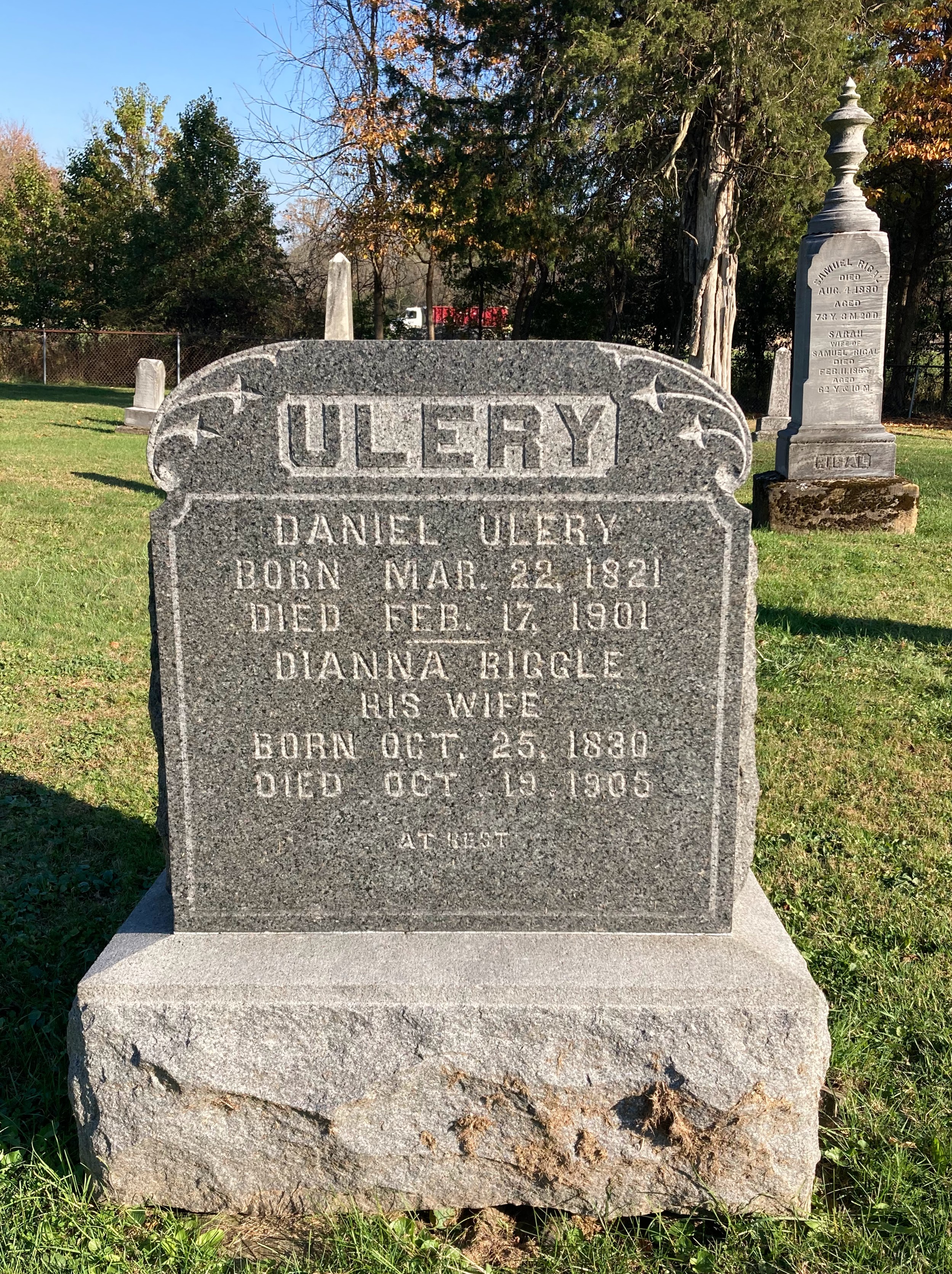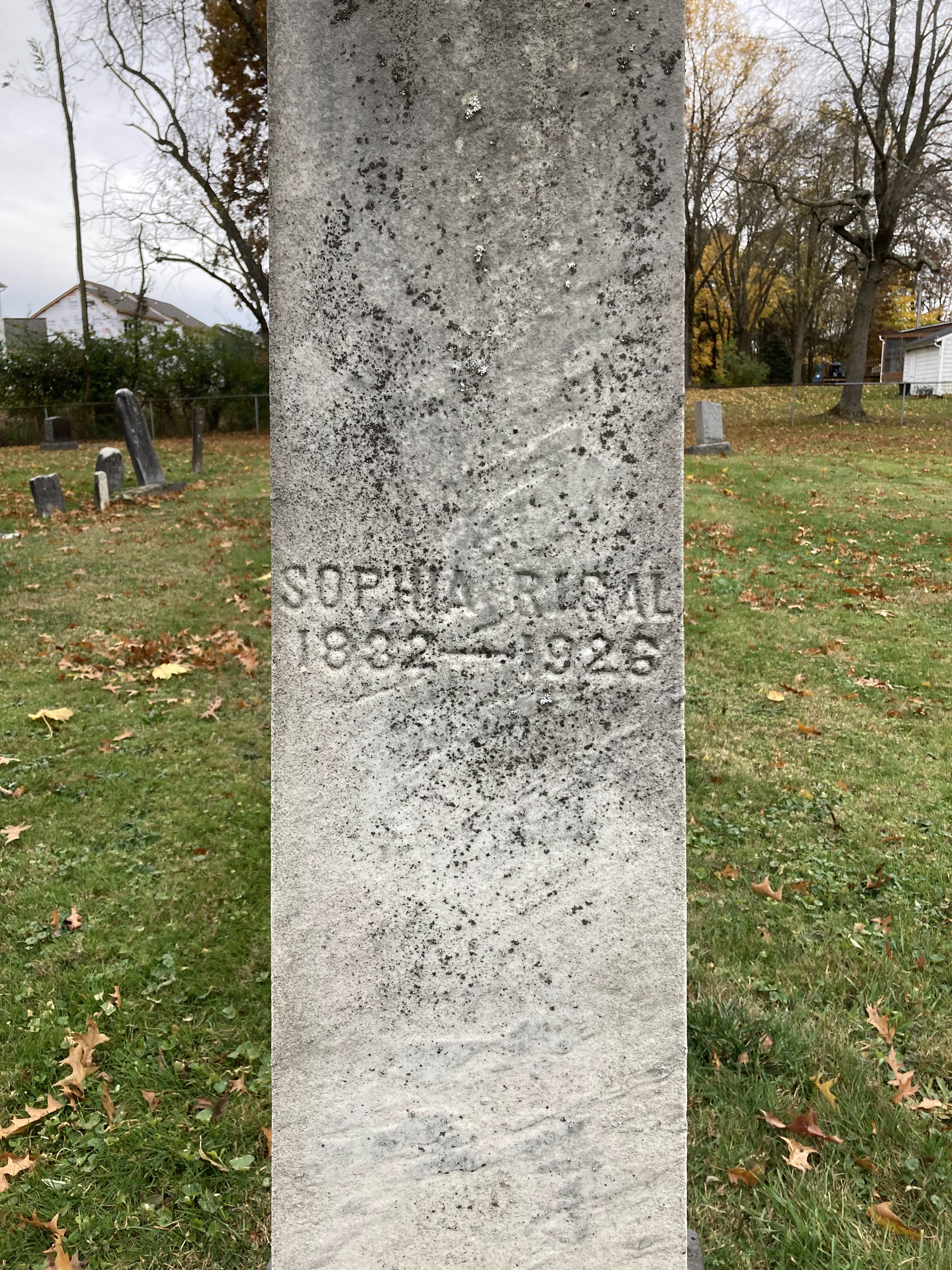 On the right in the above picture (which is to the right of the monument of Samuel/Sarah and Catherine) is the monument of Daniel, son of Samuel and Sarah, and his wife Sophia…with close-ups below. They were members of Salem Evangelical Church.The monument below (which is on the far left in the picture above the Daniel and Sophia inscriptions) is that of Dianna Riggle, daughter of Samuel and Sarah. Rigal, Riggal, Riggle, Reigle, Riegle…all the same family…Ugh.