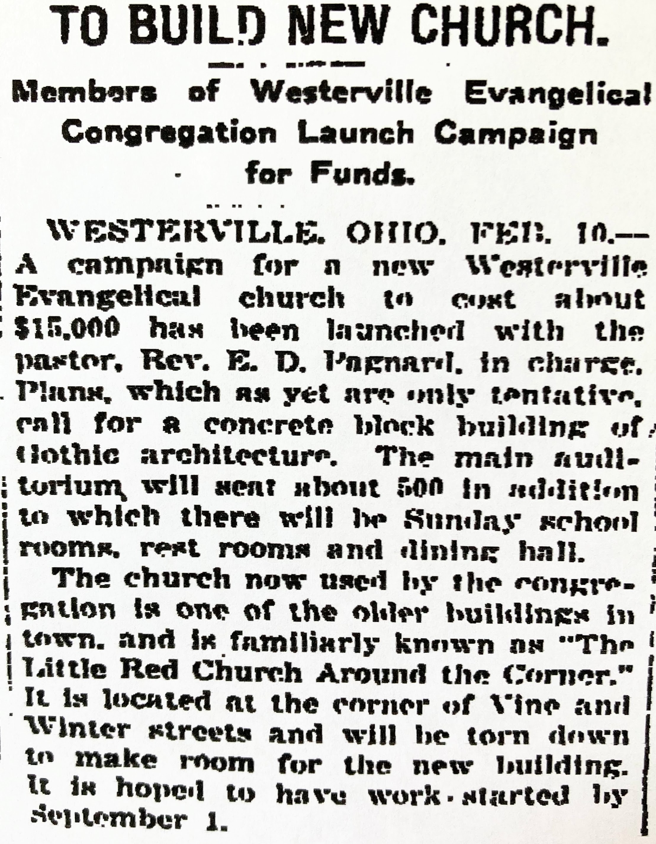 Fortunately, “The Little Red Church Around the Corner” survived a demolition plan at one time. The Columbus Dispatch 2/11/1917.