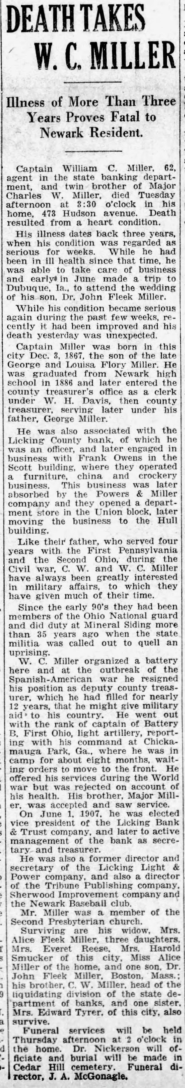 The Sandusky Star-Journal 8/30/1928. There was no local obituary.