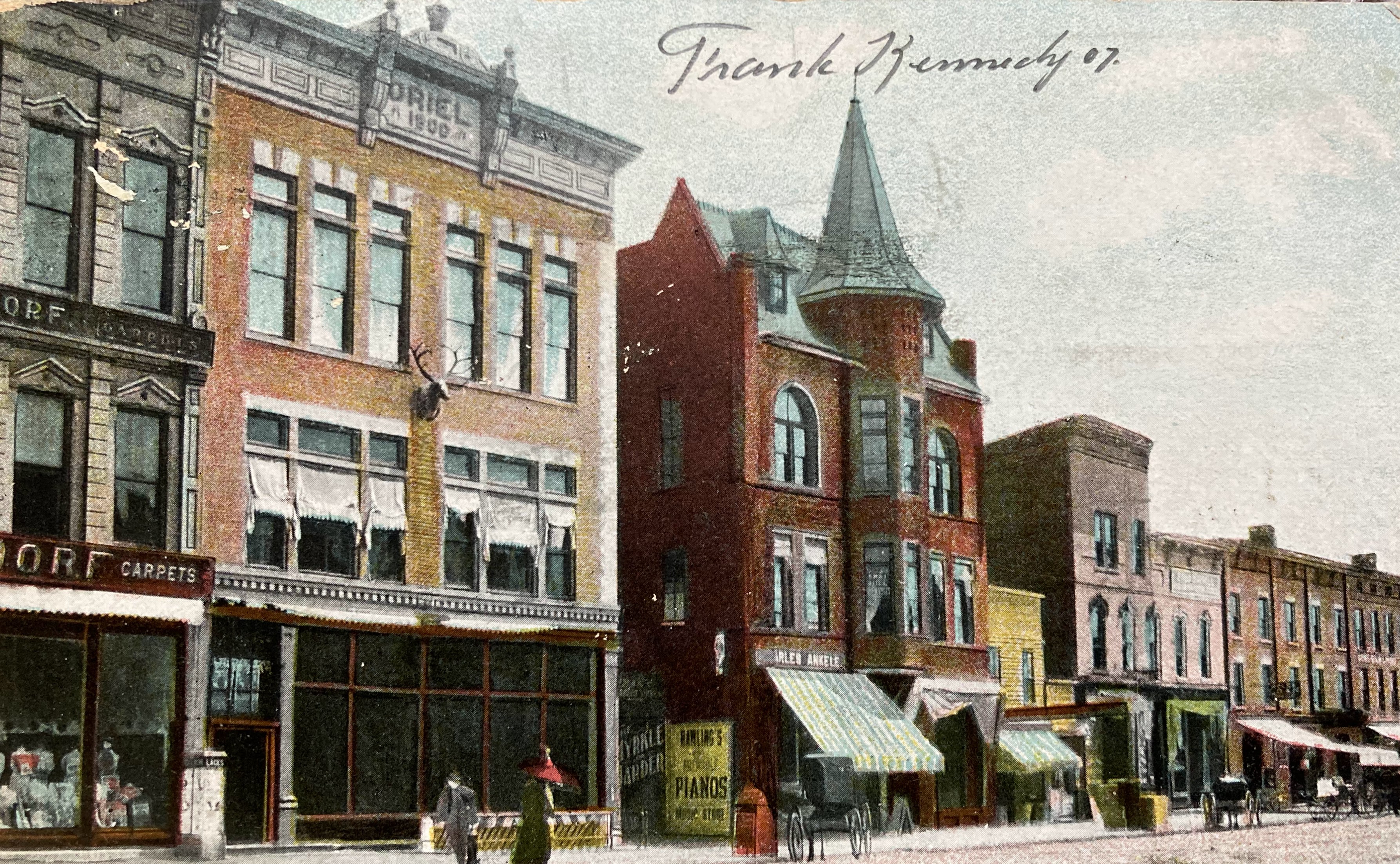 Above…the fire damage has been removed. Below…the finished rebuild minus the original 3rd floor auditorium.At the southern edge of La Rue along State Route 37 stands this marker that is almost completely hidden by a pine tree. The local barber described how to find it. I first learned of La Rue’s Oorang Indians while scanning historical material for the Digital Commons at Otterbein University. Albert Exendine (pictured below) played his final season as a member of the Oorang team alongside first year legend Jim Thorpe. In 1909 he was named head football coach at Otterbein, a team that had been a lackluster 45-74-10 since the program’s inception in 1890. He lead the team over three seasons to a 17-7-3 record. Note how the young girl behind the coach is dressed. As this is a postcard, her identity is unknown.During Coach Exendine’s time on the Westerville campus, he lived a block away at the Hotel Holmes. He is pictured in his room below…the only interior picture of the building discovered so far. An uptown icon today, it was coincidentally designed by Yost!! I got sidetracked. Back to Marion County with the next picture.Marion: Sawyer Sanitorium. 241 South Main Street. Built 1895-99. South wing designed by Yost & Packard in 1896.It’s directly across the street from the town’s very attractive former Carnegie library now part of Trinity Baptist Church. The picture above and the one below of Dr. Sawyer are from local native Stuart Koblentz’s Images of America: Marion.Today.Marion: First Presbyterian Church. 143 South Prospect Street. Built 1893. Designed by Yost & Packard.Today. Same picture as above, but with the north end extended in 1925.This illustration is from the Y&P Portrait of Architectural Realities.Marion: Marion High School. West Center at Oak Streets. Built 1893. Designed by Yost & Packard. Razed.Marion: Edward Huber Block. NW corner West Center & Prospect Streets. Built 1903. Designed by Packard. Today, commonly referred to as the “Uhler building” due to longtime former tenant Uhler-Phillips Department Store. Above photo on right from Marion County Historical Society.Today.Note the name Huber on the rooftop elevator shaft above. The Huber Block had a rooftop garden. I’m not sure people are aware this is a Packard design. That alone would be reason not to demolish this structure. It does not look fully occupied and thus appears threatened.Edward Huber was president of Huber Manufacturing Company in Marion. Among its products were steam engines, threshers, farm tractors, road rollers and graders. He was also president of Marion Power Shovel. According to an article in the 8/21/2021 Columbus Dispatch, his company “created machinery to dig the Panama Canal, build the Hoover Dam, and move Apollo and NASA’s space shuttles into position for take-off.” The museum at the Marion County Fairgounds is well worth a visit… and you just might get shown around by Ed Huber, great-great grandson of Edward Huber.